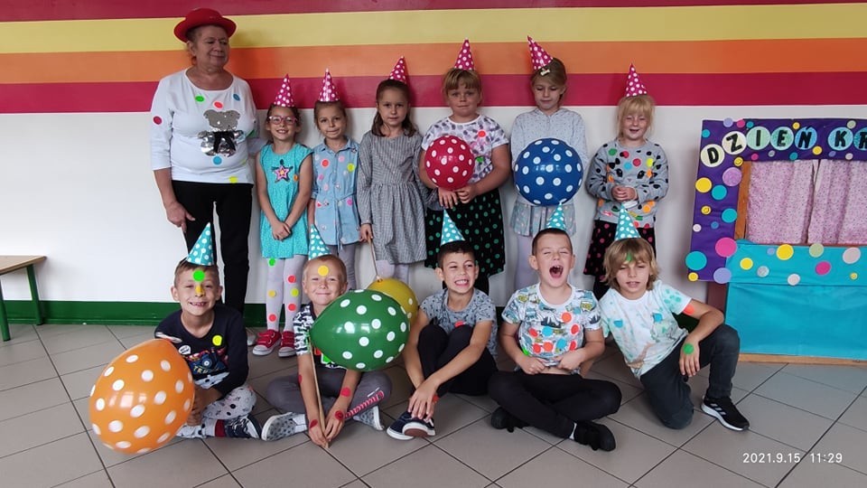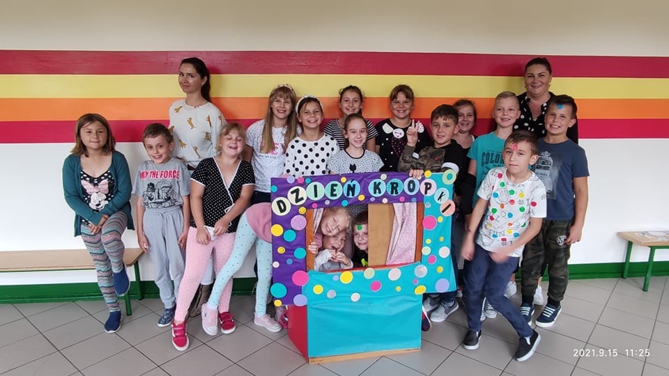 15 września obchodzimy International Dot Day, czyli Międzynarodowy Dzień Kropki. Jest to święto kreatywności, odwagi i zabawy. W naszej szkole najmłodsi uczniowie oddziału przedszkolnego oraz uczniowie klas 1-3 od samego rana cieszyli się tym dniem! Odbyła się prezentacja krótkometrażowego filmu na temat książki The Dot, którą napisał Peter Reynolds. Jest to historia dziewczynki, która dzięki małej kropce zmieniła myślenie o sobie i uwierzyła we własne możliwości. Następnie pogadanka na temat obejrzanego filmu i odpowiedzi na pytania. Na zakończenie naszego świętowania została zrealizowana najbardziej twórcza część lekcji- prace plastyczne w formie wspólnych, klasowych plakatów wykonane przez naszych uczniów.
