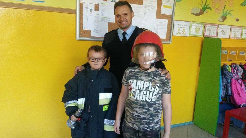 20 września uczniowie klas I-III i dzieci z oddziału przedszkolnego wzięli udział w spotkaniu z przedstawicielem Państwowej Staży Pożarnej w Lęborku,ogn. Wojciechem Kublikiem.