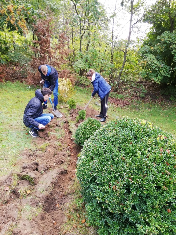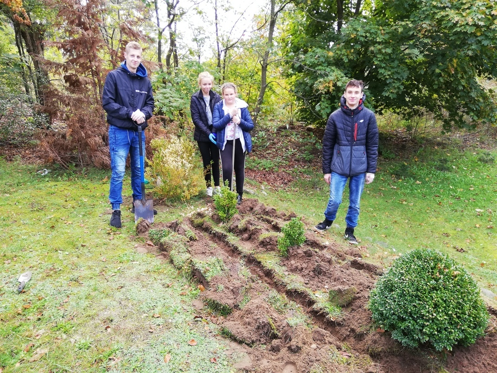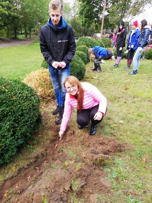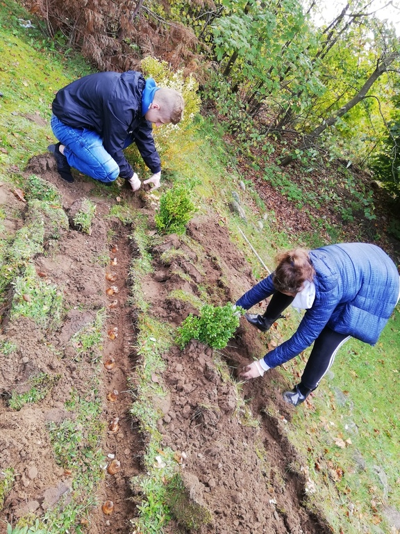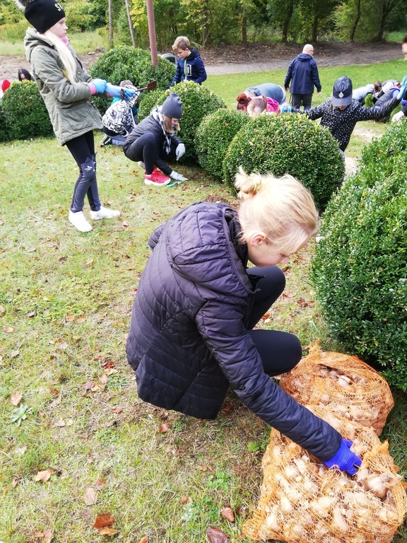 Żonkil symbolizuje triumf poświęcenia nad egoizmem i miłości nad śmiercią. Ten skromny kwiat poprzez swoją subtelność, barwę i zapach uświadamia nam wyższe cele istnienia, ukazując kruchość i ulotność życia. Dlatego też bardzo chętnie w sobotę 5 października uczestniczyliśmy w akcji sadzenia żonkili w Pogorzelicach, Celem tej inicjatywy jest wsparcie Lęborskiego Hospicjum Stacjonarnego. Wspólnie zasadziliśmy "żonkilową łąkę", która stanie się częścią Lęborskiego Pola Nadziei.