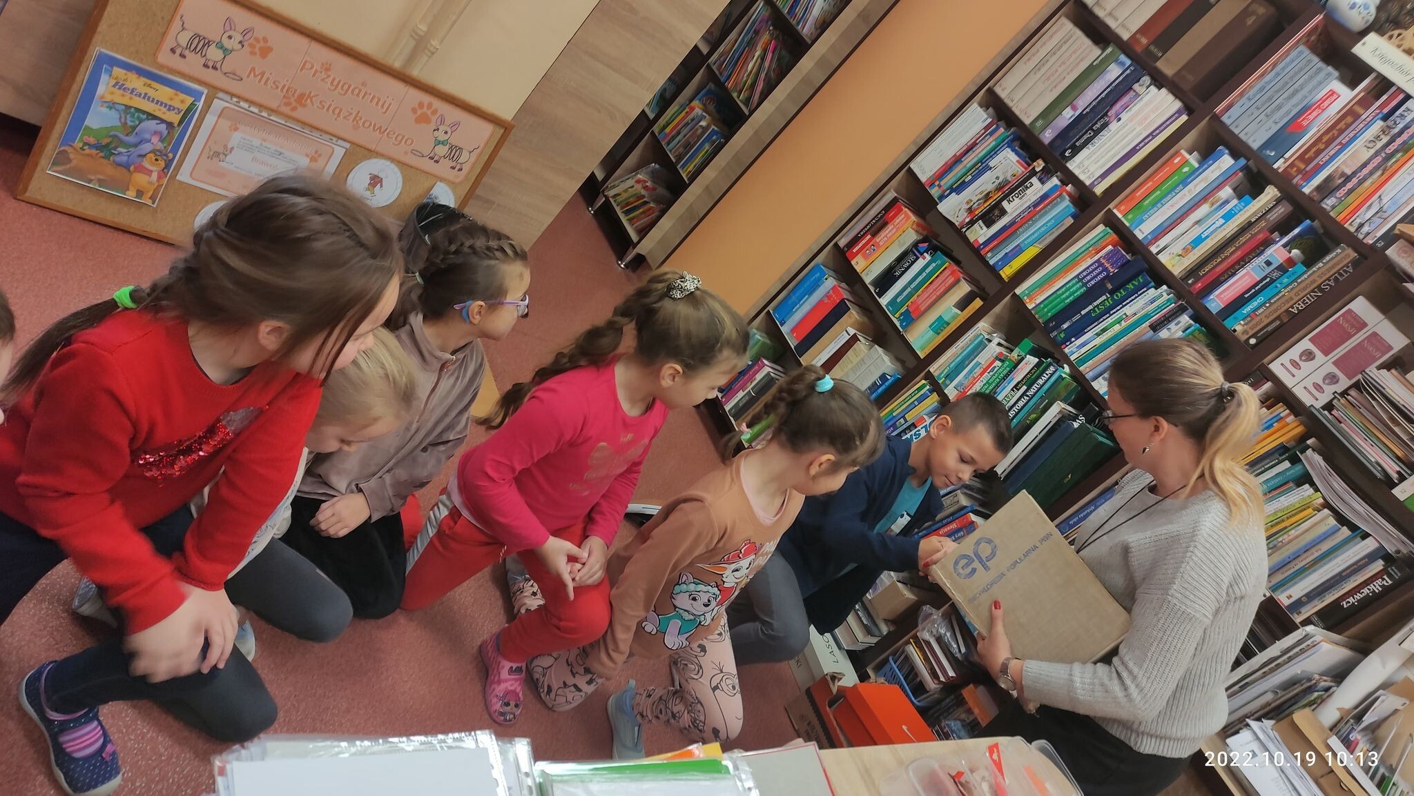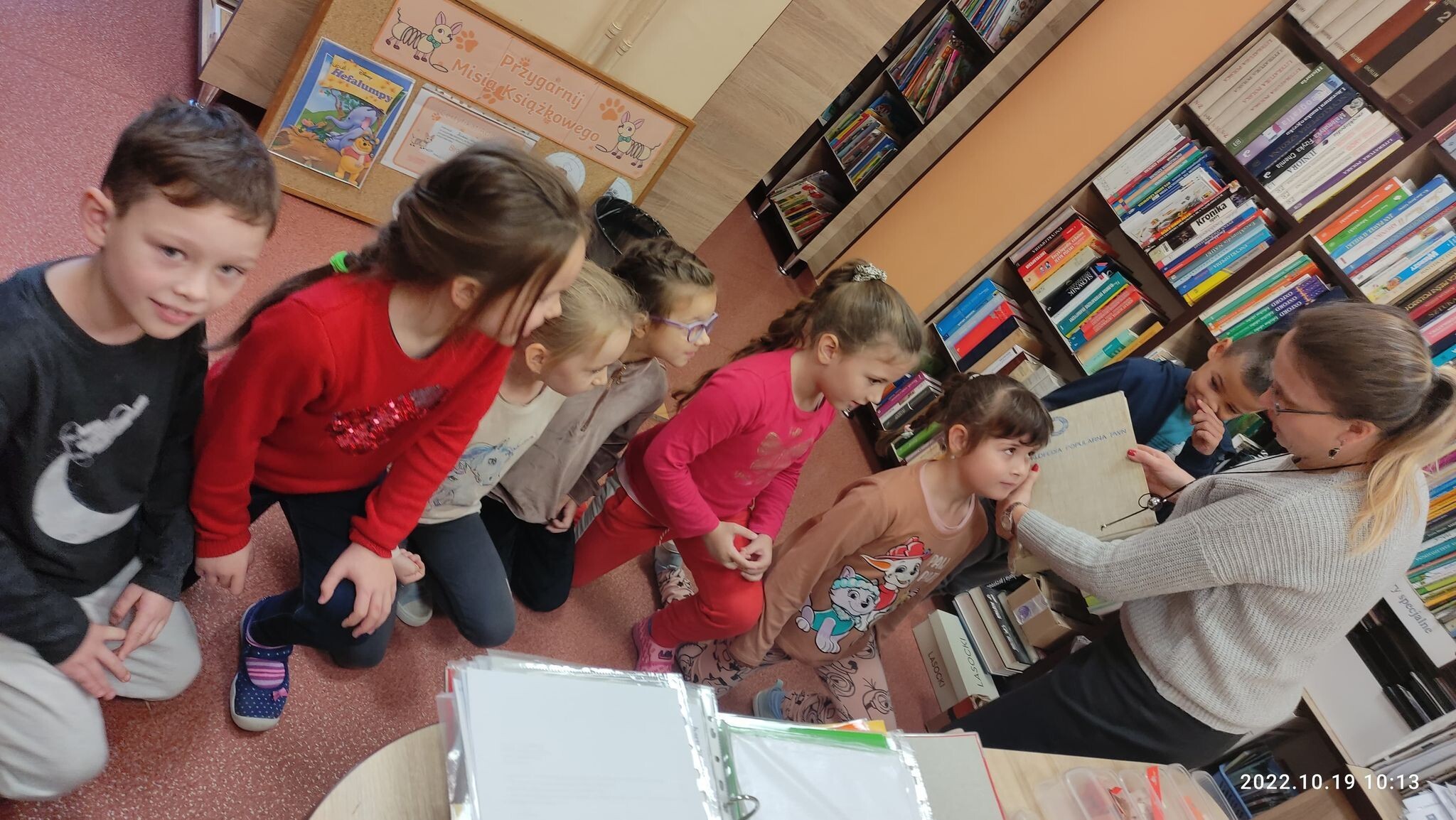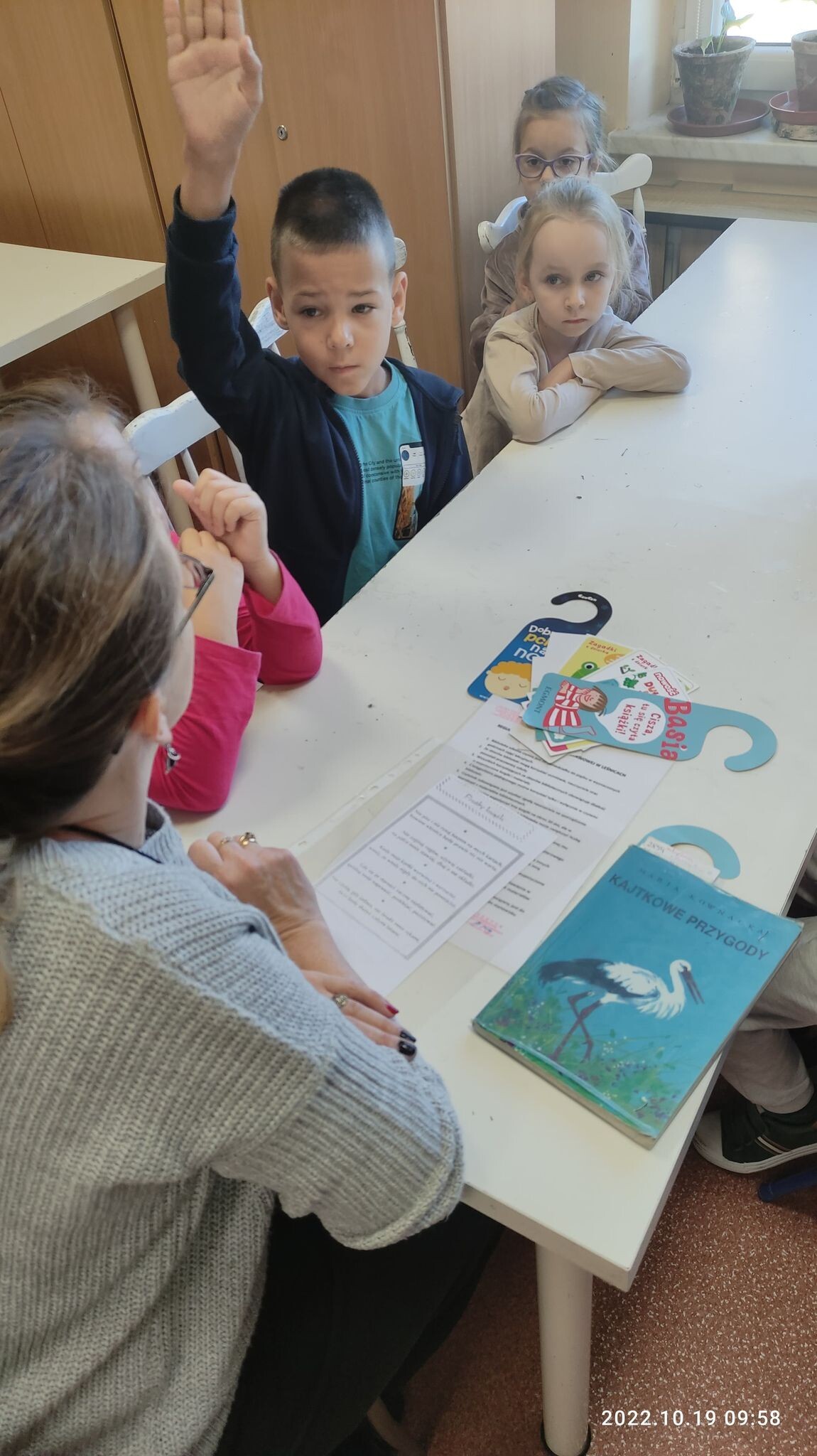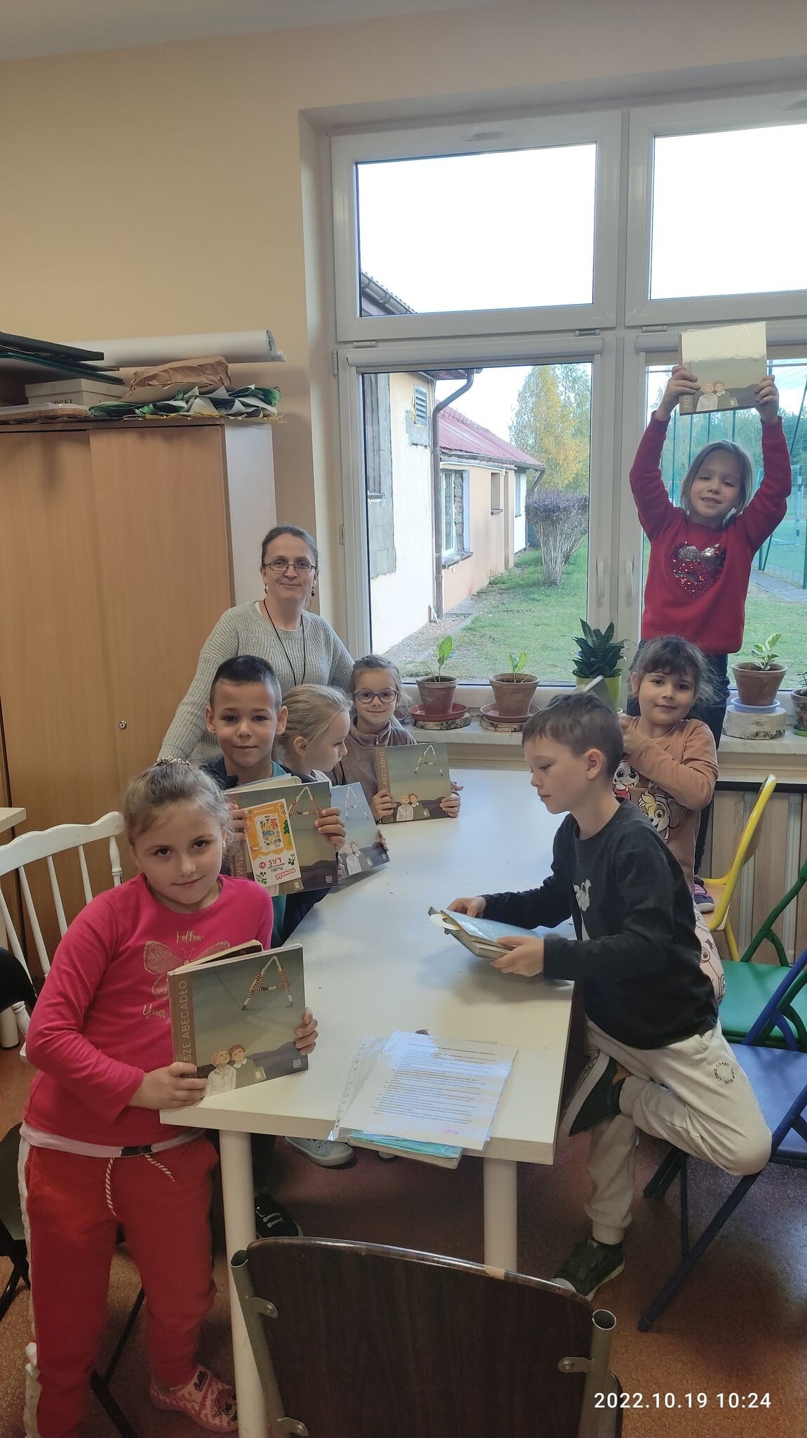 Jak co roku klasy pierwsze wszystkich szkół w Polsce otrzymują z Instytutu Książki publikacje , które zachęcają do rozpoczęcia samodzielnej przygody z literaturą. Są to: książka "Pierwsze abecadło" oraz folder "Książką połączeni, czyli uczymy się czytać razem". W tym roku szkolnym pierwszaki otrzymały takie pakiety w dniu pasowania na czytelnika. Choć nasi najmłodsi dopiero uczą się samodzielnie czytać, zawsze mogą liczyć na pomoc rodziny. Założenie karty bibliotecznej i pierwsze wypożyczanie książek dało dzieciom dużo radości i powodu do dumy. Pierwszaczki otrzymały garść informacji od pani Marzenki na temat regulaminu wypożyczania i zasad postępowania z książkami oraz o zasadach zachowania w bibliotece. Na zakończenie każdy z osobna został pasowany na czytelnika. Na zakończenie uczniowie wykonali własne zakładki do książek.
