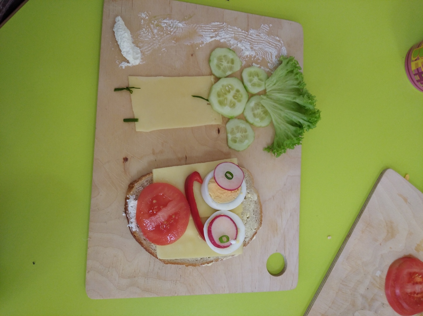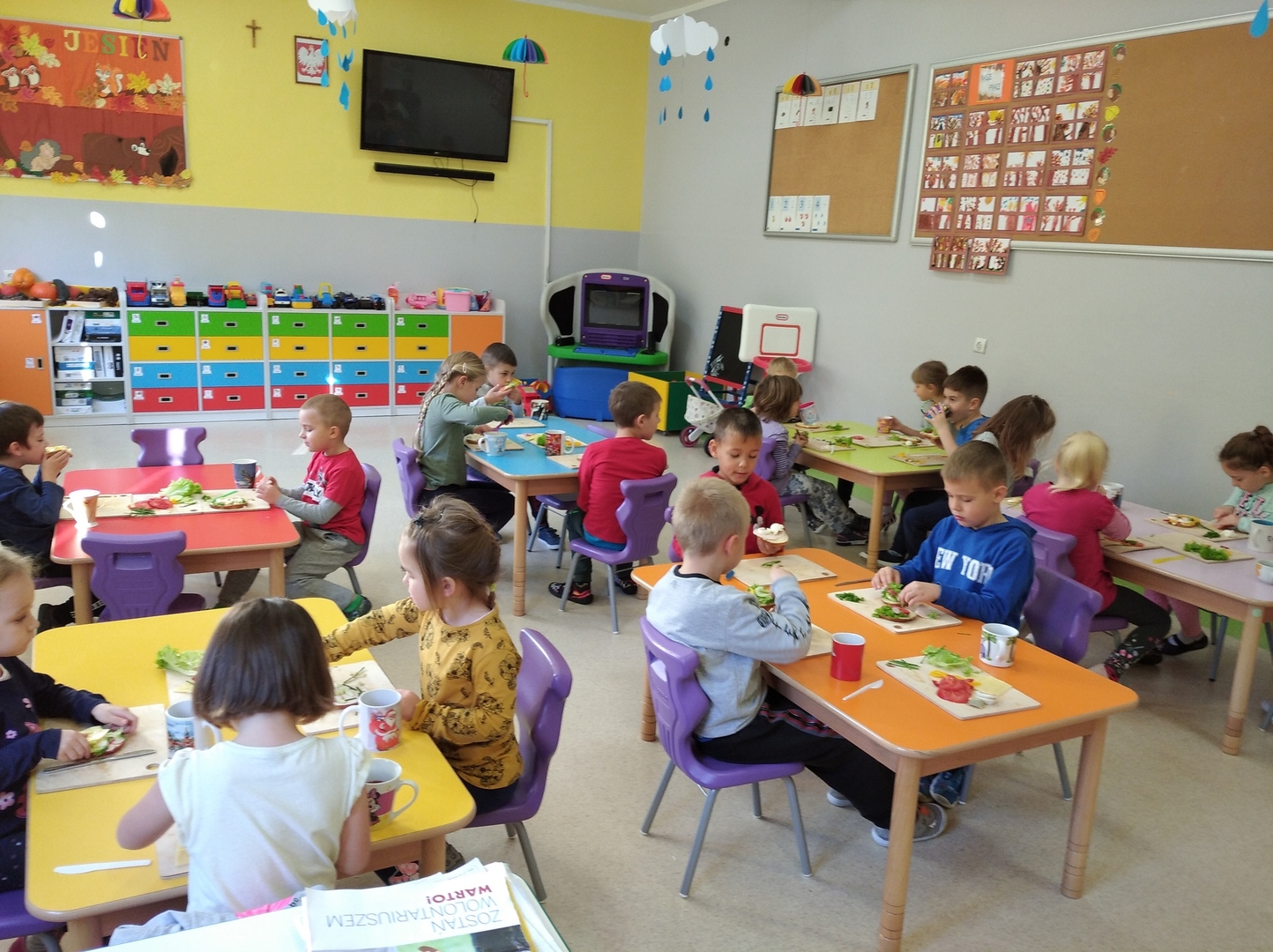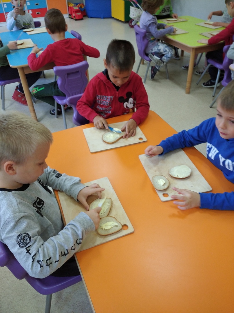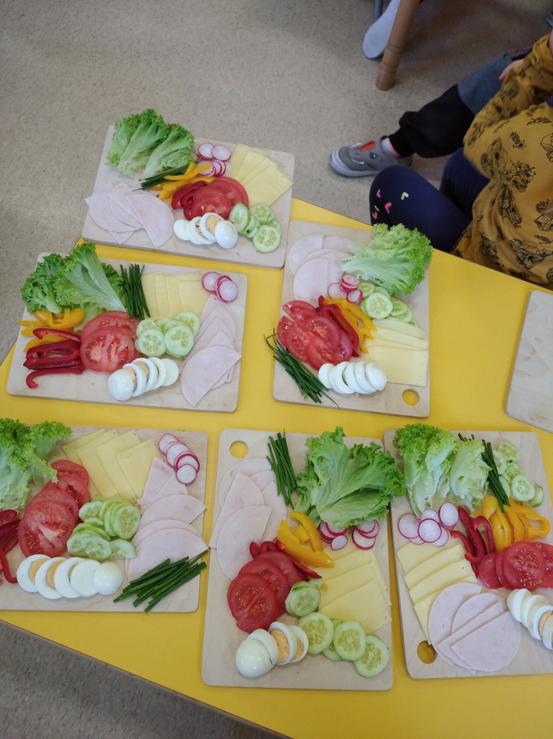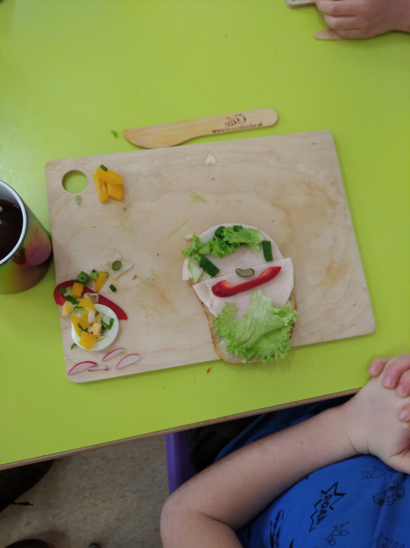 O tym, natomiast , że warzywa są zdrowe, dzieci przekonały się innego dnia robiąc zdrowe kanapki. To było dla nich wyzwanie. Tego dnia swoje śniadanko, które zawsze było już przygotowane przez któregoś z domowników, przedszkolaki musiały przygotować sobie same. I temu zadaniu sprostały. Kanapki były bajecznie kolorowe i przede wszystkim zdrowe.