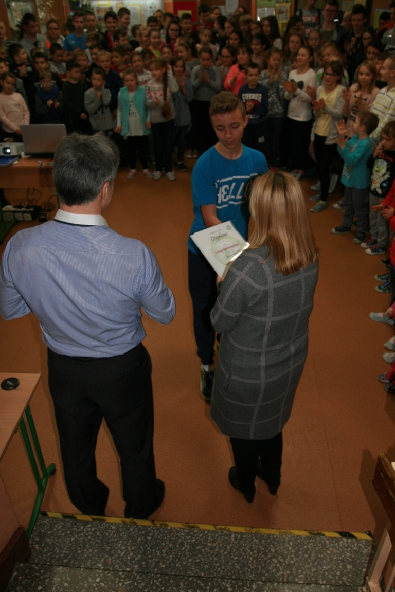 W dniu 15.12.2017r. klasa IV wraz z wychowawcą zorganizowała podsumowanie listopadowego apelu samorządowego pod hasłem "Ruch to zdrowie". W prezentacji multimedialnej zostały przedstawione zdjęcia z konkursu żonglowania, szkolnego turnieju szachowego o mistrzostwo szkoły, szkolnego quizu wiedzy na temat sportu oraz konkursu w długości skoków na skakance. Najlepsi zostali nagrodzeni czekoladami i dyplomami, a oto lista zwycięzców: