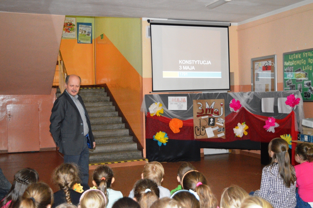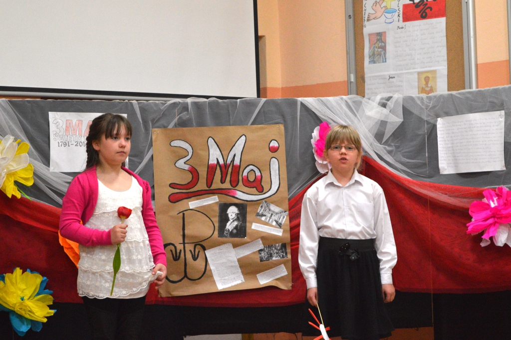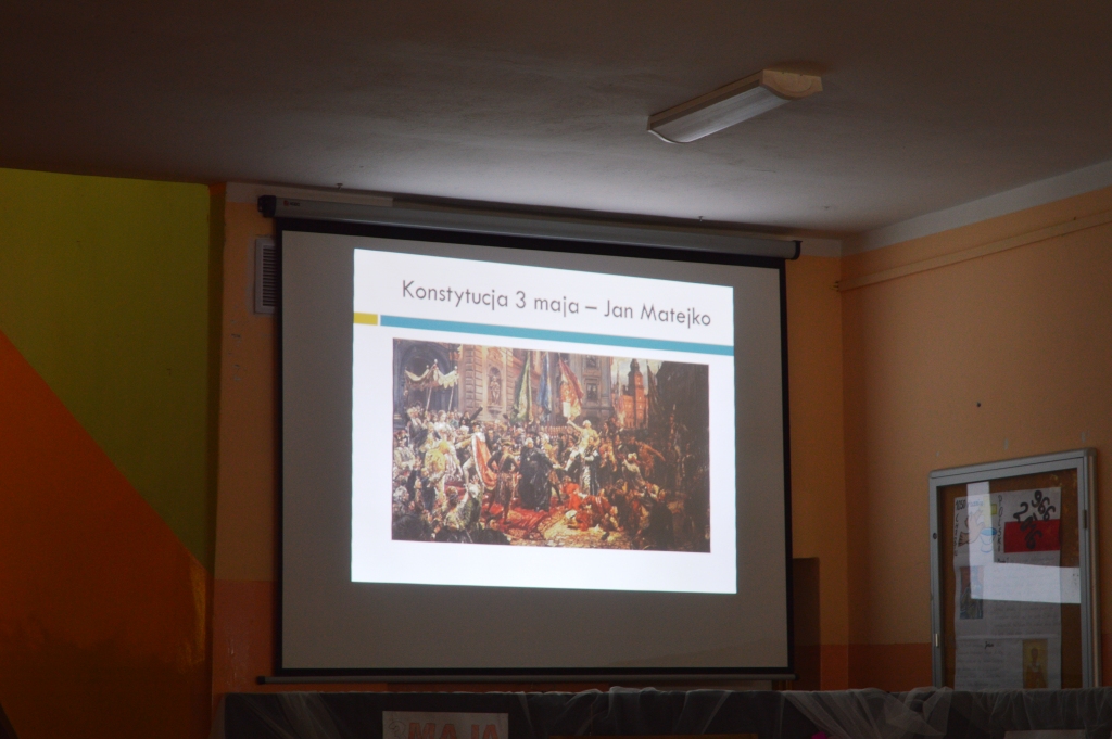 Dnia 4 maja jak co roku uczniowie tym razem klasy III i IV przygotowywani przez p.B.Wincewicz i p.J.Gresztę zaprezentowali uroczysty apel z okazji rocznicy "Konstytucji 3 Maja" . Najpierw zaprezentowana została prezentacja multimedialna przygotowana przez Dominika Malinowskiego. Następnie trzecio- i czwartoklasiści brawurowo zaprezentowali swój krótki program artystyczny. Występy zostały nagrodzone gromkimi brawami. O oprawę scenograficzną zadbali uczniowie III gimnazjum.