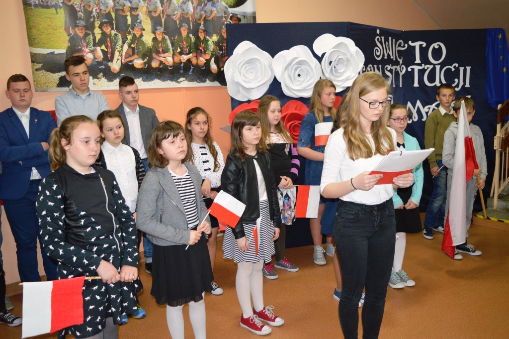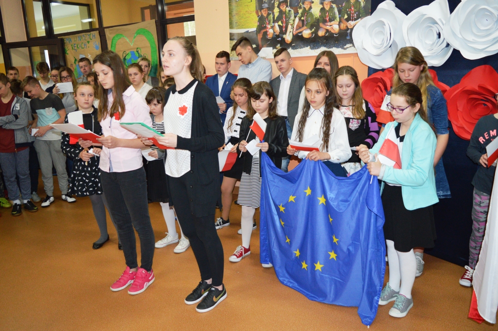 Maj jest miesiącem wyjątkowym, bogatym w uroczystości i rocznice. Podczas uroczystego apelu czciliśmy 226. rocznicę uchwalenia Konstytucji 3 Maja,13. rocznicę przystąpienia Polski do Unii Europejskiej oraz przypomnieliśmy historię naszej flagi. Wiersze i piosenki uświadomiły wszystkim, że naszym obowiązkiem jest znać historię swego kraju, szanować symbole narodowe i pamiętać, że należymy do wielkiej europejskiej rodziny. Apel zakończył się wspólnym odśpiewaniem " Ody do radości".