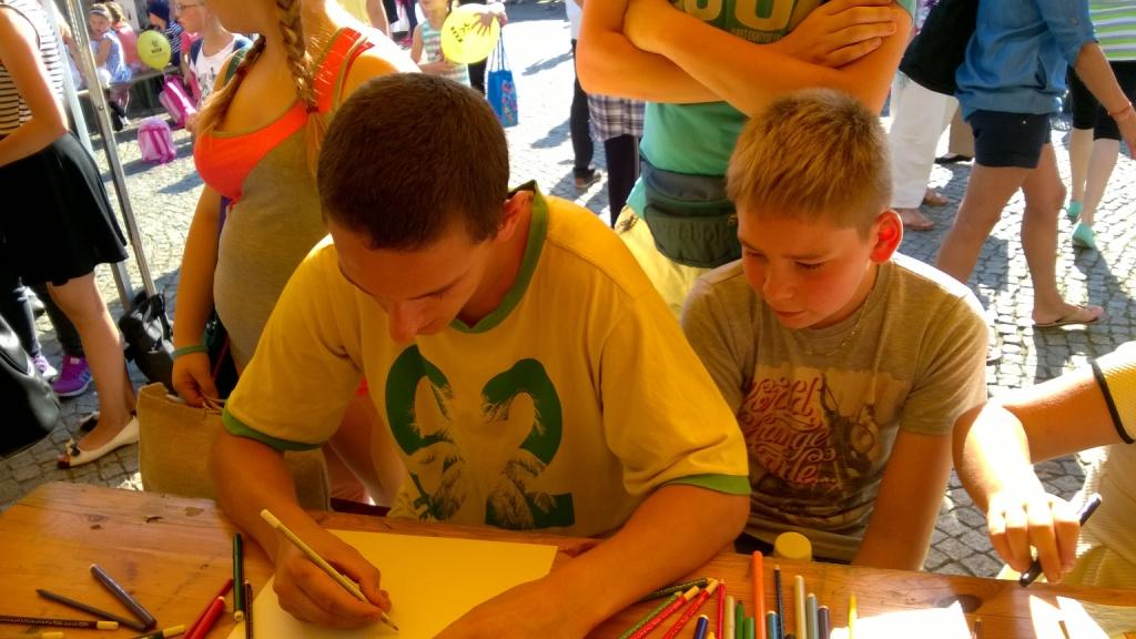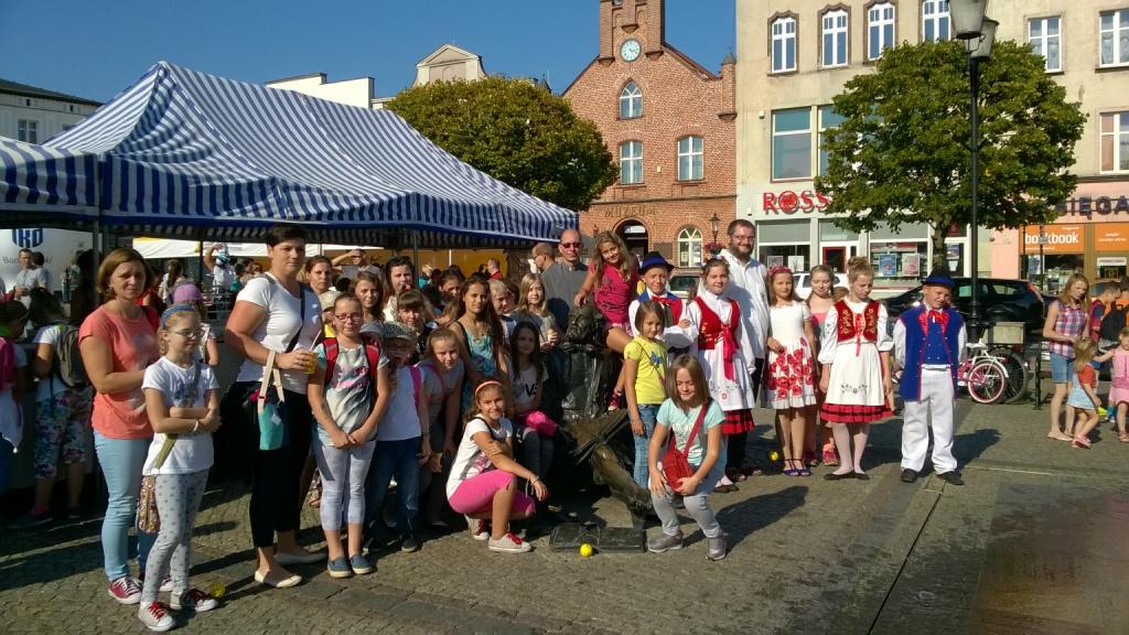 Bajkowo i kolorowo… tak właśnie spędzili niedzielne popołudnie uczniowie uczęszczający w naszej szkole na język kaszubski. Wraz z Panią Anettą Treder, Panią Martą Prosińską-Żydyk, Ks. Proboszczem Robertem Mikulskim i Rodzicami wzięli udział w Bajkowym Festynie, który 11 września odbywał się w Kościerzynie. Czekało tam na nich mnóstwo atrakcji, a wśród nich gry i zabawy, warsztaty i konkursy, występy kaszubskich zespołów dziecięcych oraz stoiska rodzimych rzemieślników i wydawców. Jednak najciekawszym wydarzeniem było spotkanie z Panem Tomaszem Fopke i Januszem Mamelskim, którzy tego dnia promowali swoje nowowydane publikacje dla dzieci i młodzieży: „Czy mucha ma język? Wiersze dla dzieci” i „Mack”. Rozmowa i pamiątkowe zdjęcie z tymi uznanymi, cenionymi i niezwykle zasłużonymi dla kaszubszczyzny twórcami były dla nas bardzo miłym akcentem i sympatyczną niespodzianką. Nie ukrywamy, że zdobyty autograf i przyjęte przez Panów zaproszenie do naszej szkoły cieszy nas i czyni czas oczekiwania na kolejne spotkanie jeszcze bardziej interesującym.