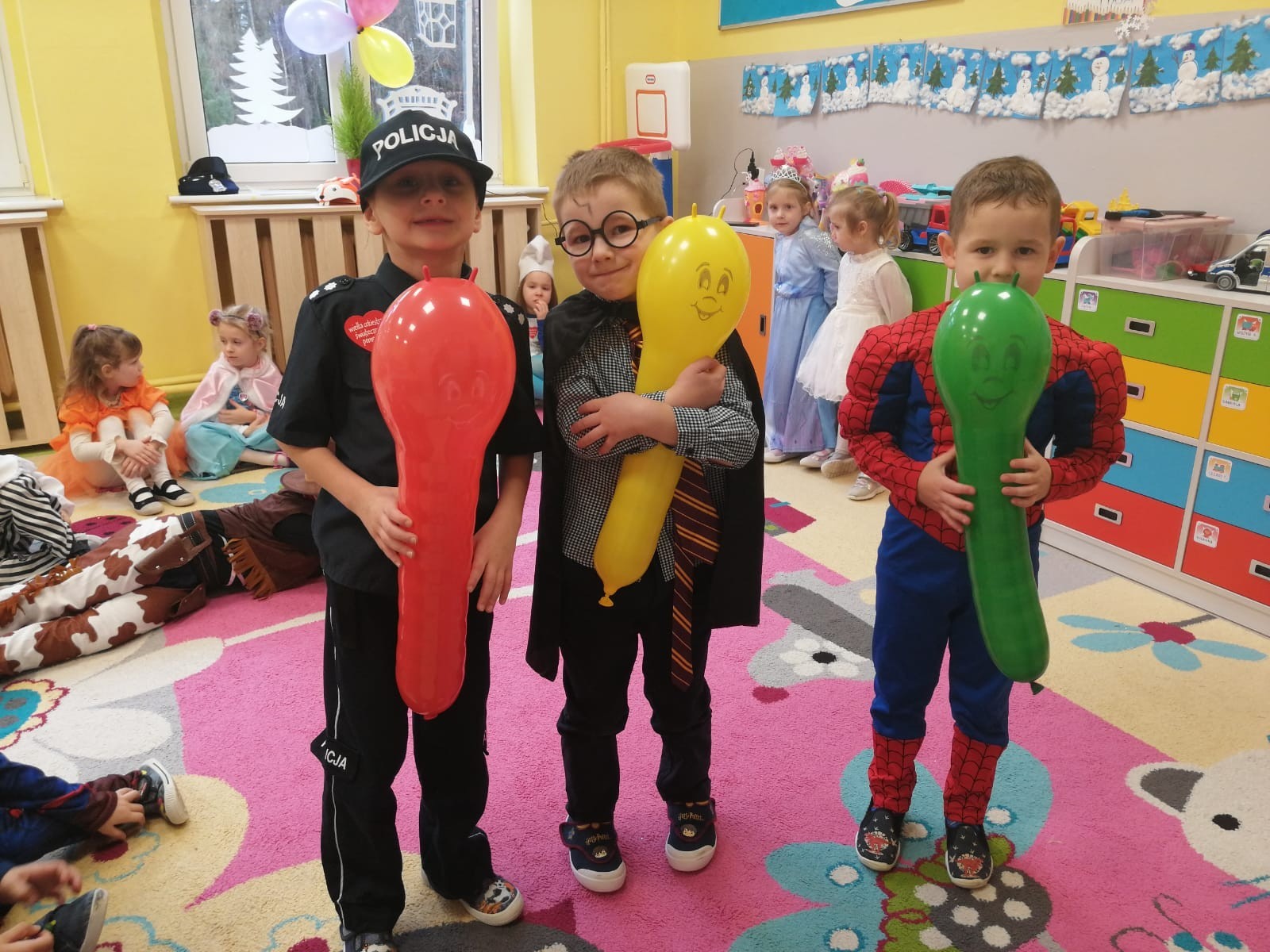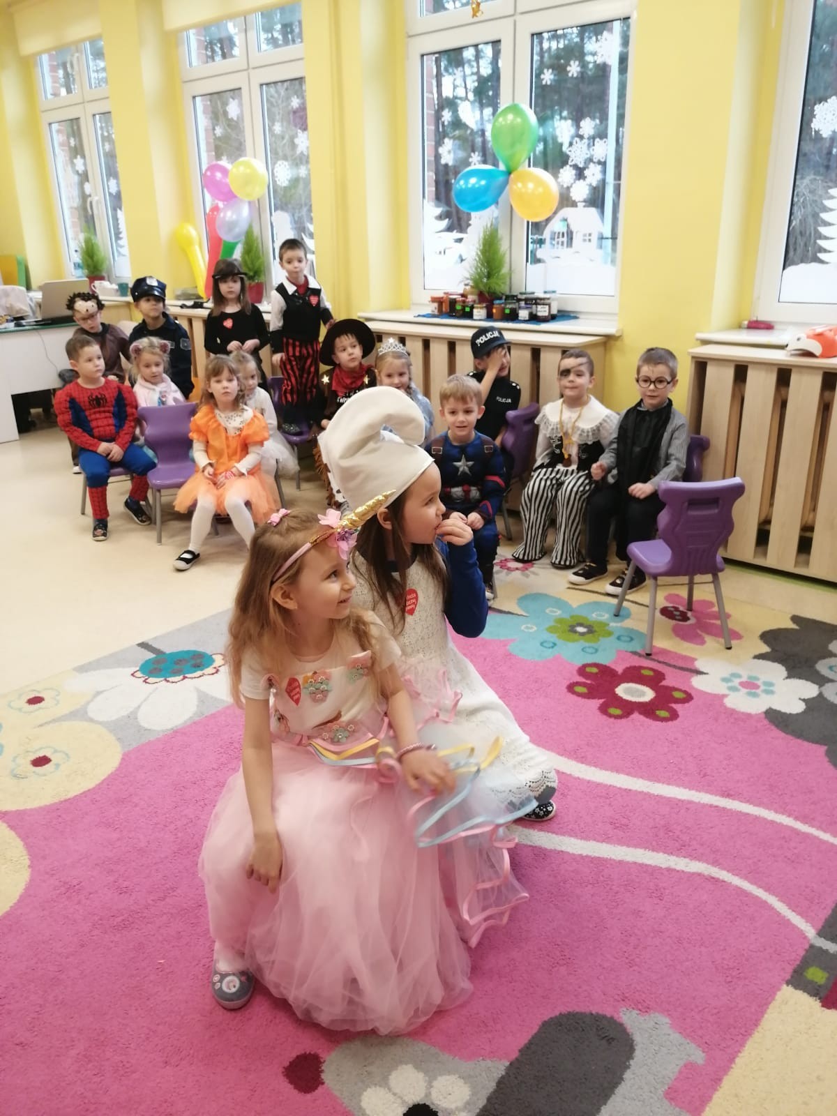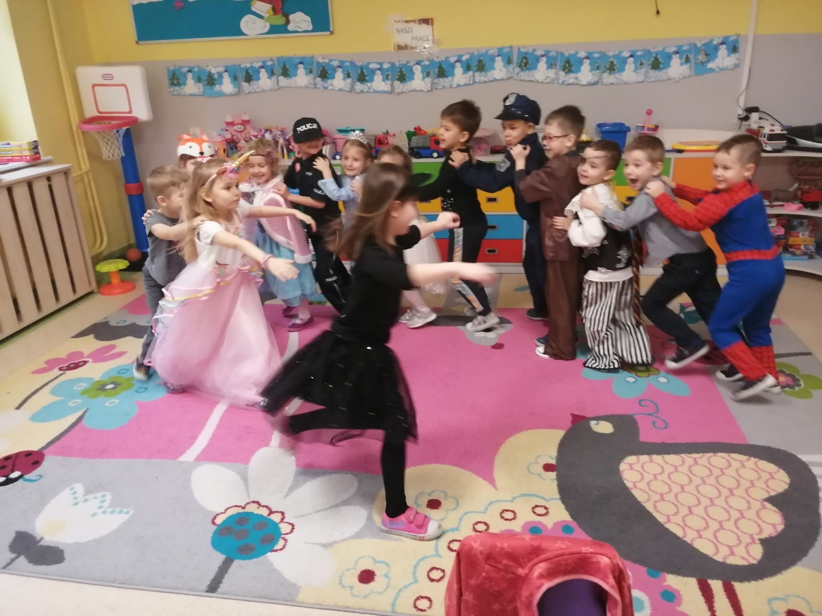 Tego dnia w przedszkolu było głośno i kolorowo ponieważ pojawiły się kolorowe postacie. Dzieci przebrane były za bohaterów znanych bajek, można było też spotkać wróżki, królewny, księżniczki, piratów, policjantów, Harrego Pottera i wiele wiele innych postaci. Wystrój sali wprowadził w radosny nastrój oraz zachęcał wszystkich do wesołej zabawy. Przebierańcy świetnie się bawili uczestnicząc we wspólnych zabawach. Podczas odpoczynku można było skosztować przygotowanych dla każdego przysmaków.
