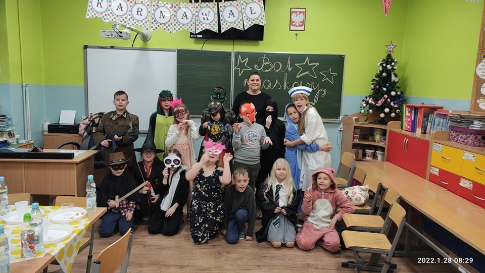 Karnawał to czas zabaw i balów, także dla najmłodszych. Kolorowe stroje, bajeczny wystrój i skoczna muzyka– w takiej atmosferze bawili się uczniowie klasy III podczas balu karnawałowego. Wszyscy z dumą prezentowali bajeczne stroje. Z wielką ochotą uczestniczyły w tańcach, zabawach i konkursach prowadzonych przez wychowawczynię. Na twarzach malował się uśmiech, który nie znikał mimo chwilowego zmęczenia. Bal był okazją do zintegrowania dzieci i pozostawił wiele niesamowitych wrażeń!!!