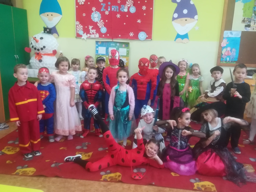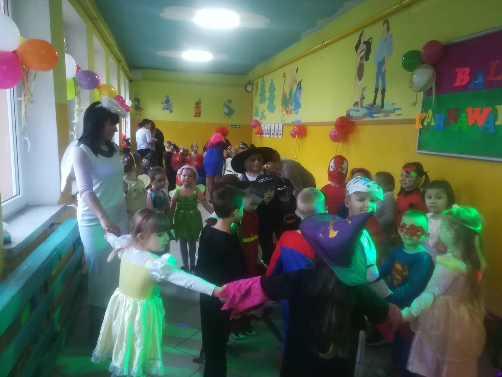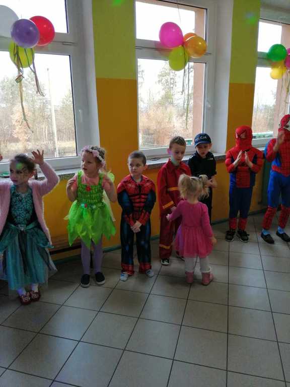 Bal karnawałowy to jedna z corocznych, ulubionych przez dzieci imprez urządzanych w naszej szkole. Tego dnia odwiedzili nas bohaterowie różnych bajek i filmów. Gościł u nas Spiderman, Piotruś Pan, Dzwoneczek, czaownica czy Elza z Krainy Lodu. Byli także oficerowie służb porządkowych m.in. policjant i strażak. Wyszyscy bawili się wspaniale a na koniec zasiedli przy stole przy słodkim poczęstunku.
