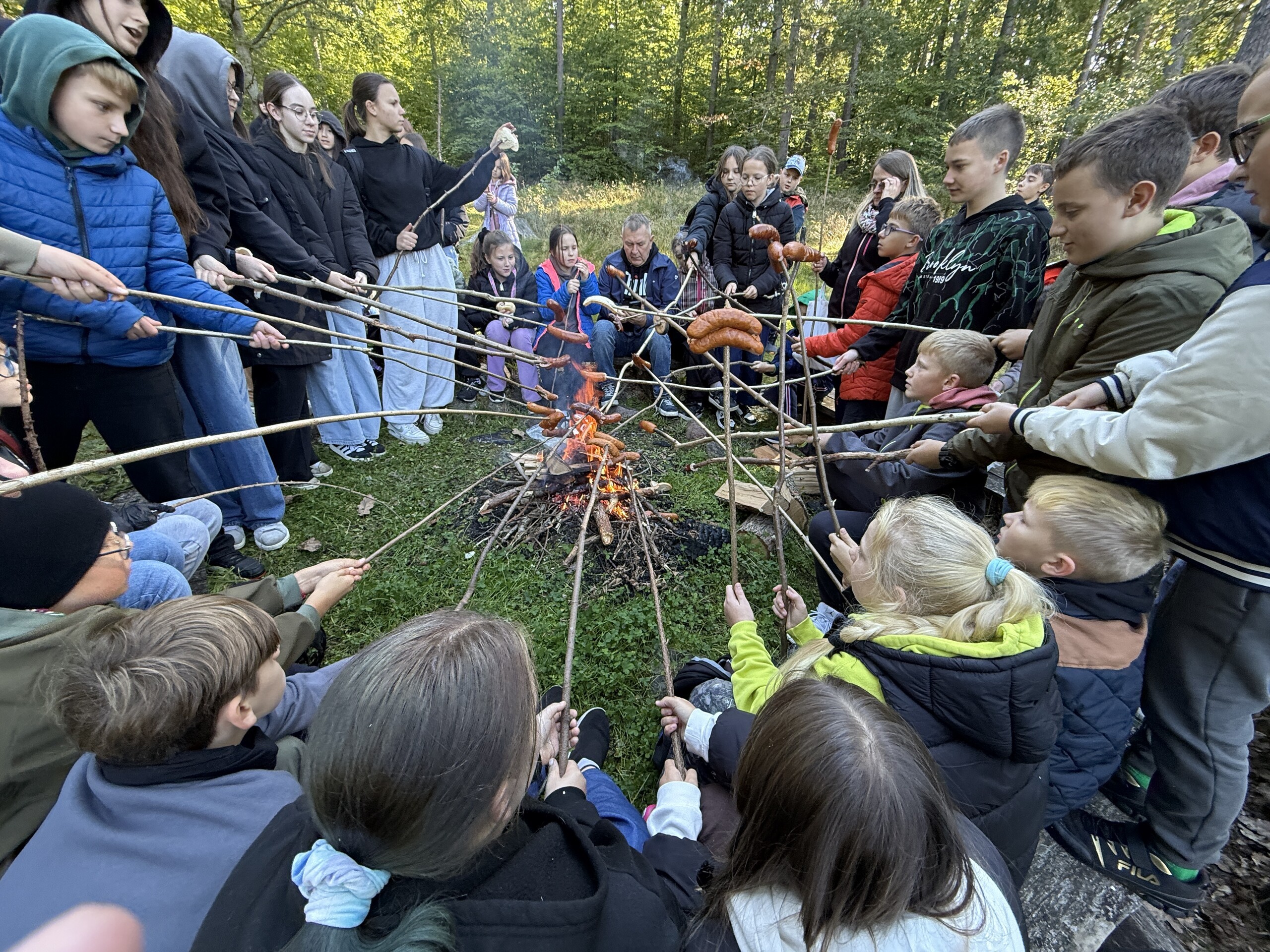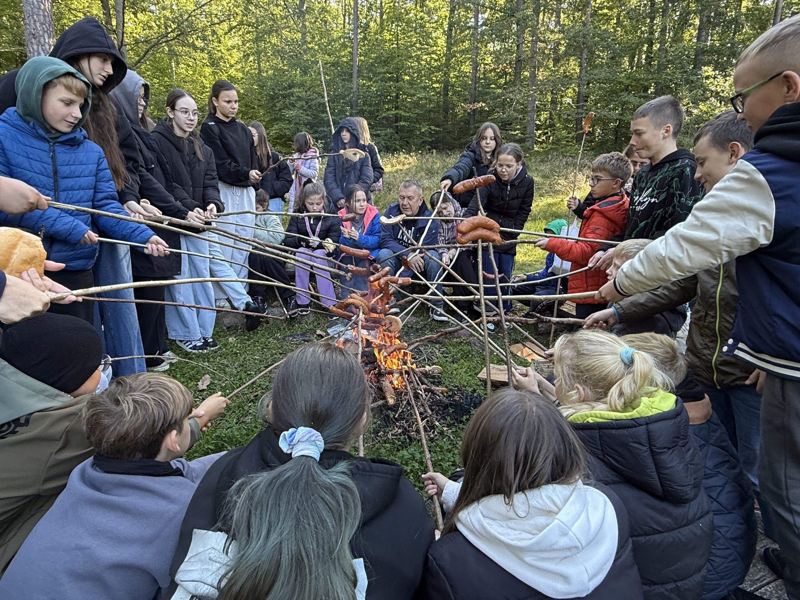 Uczniowie z klas 4-8 wybrali się na jesienny spacer z panem leśniczym Sławomirem Mazurem. W trakcie leśnej wędrówki zapoznali się z rodzimymi i obcymi gatunkami drzew w naszych lasach, największymi zagrożeniami dla polskich lasów. Dowiedzieli się na czym polega gospodarka leśna, jak las przygotowuje się do zimy i jak zmienia się jego wygląd jesienią. Na zakończenie rozpaliliśmy z leśniczym ognisko, zjedliśmy pyszne kiełbaski i umówiliśmy się na kolejne spotkanie. Następnym razem będziemy sadzić drzewa w lesie!