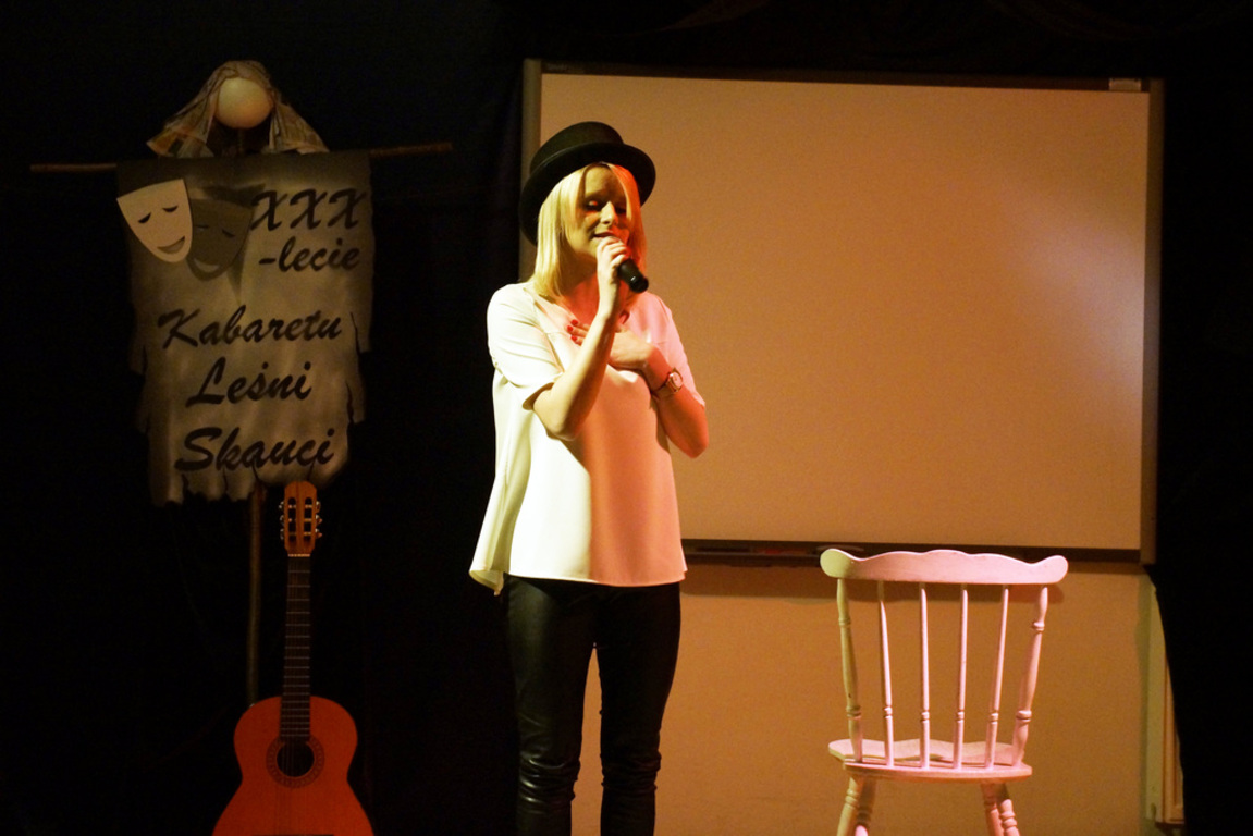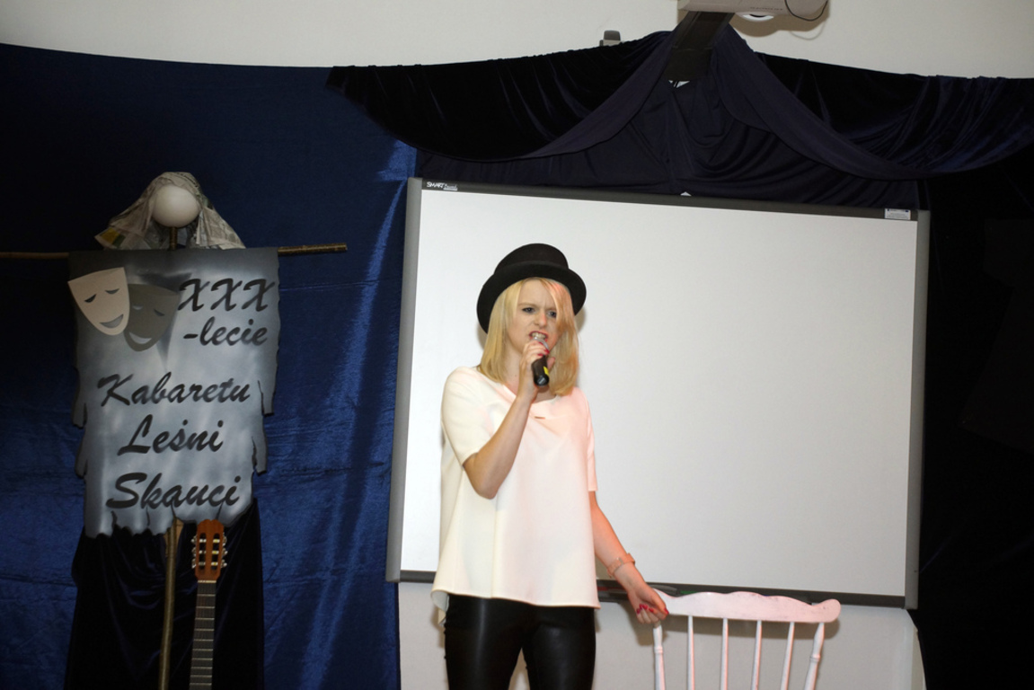 Dnia 22.XI. 2014 roku w Zespole Szkół w Leśnicach odbył się uroczysty „Benefis” z okazji XXX-lecia istnienia szkolnego Kabaretu Leśni Skauci , którego założycielem i „mentorem” jest od początku nauczyciel plastyki i muzyki p.Jarosław Greszta. Kabaret został laureatem licznych nagród m.innymi : I nagrody w Międzynarodowym Festiwalu Teatralnym Malbork 2007, I Nagroda w Ogólnopolskim Festiwalu Małych Form Teatralnych Ciechanów 1987, „Brązowa Jodła” Ogólnopolskiego Festiwalu Kielce 1987 i wiele innych. Z tej okazji na uroczyste obchody przybyli licznie „absolwenci” tej artystycznej „kuźni talentów” z poprzednich lat. Na wstępnie byli „kabareciarze” oraz zaproszeni goście złożyli serdeczne życzenia z okazji „benefisu” opiekunowi zespołu. Następnie w części artystycznej wystąpili obecni kabareciarze w spektaklu pt. „Bajki dla niegrzecznych dzieci” następnie mini-recital brawurowo wykonała Martyna Knaś. „Gwoździem” programu był bezapelacyjnie , owacyjnie nagrodzony przez publiczność , przejmujący spektakl pt.„Oskar” w wykonaniu Mateusza Bednarka i Agaty Raguzy. Na zakończenie wszyscy „kabaretowi absolwenci” zaśpiewali wspólnie na scenie „Ale to już było” , dodając między wierszami –„I niech wróci więcej!!!”. W imieniu organizatorów chciałbym serdecznie podziękować wszystkim uczestnikom tego „magicznego wieczoru”, za słowa otuchy i życzenia – do rychłego zobaczenia!.
