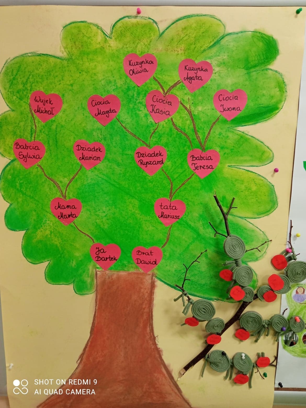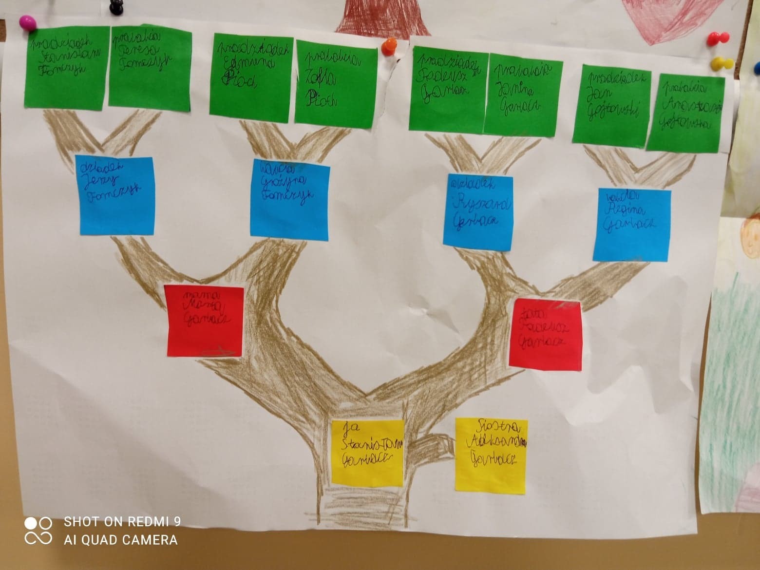 W ramach edukacji społecznej uczniowie klasy drugiej wraz z rodzicami przygotowali drzewa genealogiczne swoich rodzin. Dzięki temu dzieci mogły poznać "swoje korzenie" w efekcie powstały bardzo ciekawe prace.