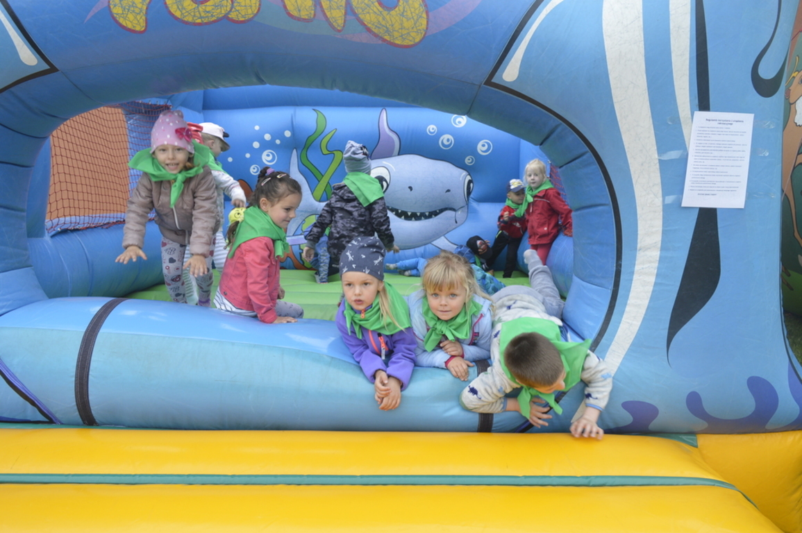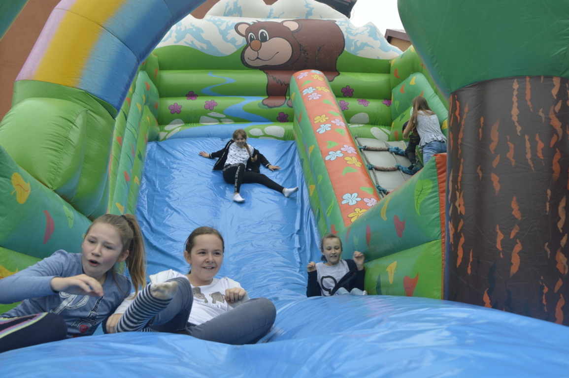Dla najmłodszych przygotowano atrakcje w postaci kolorowych zjeżdżalni.