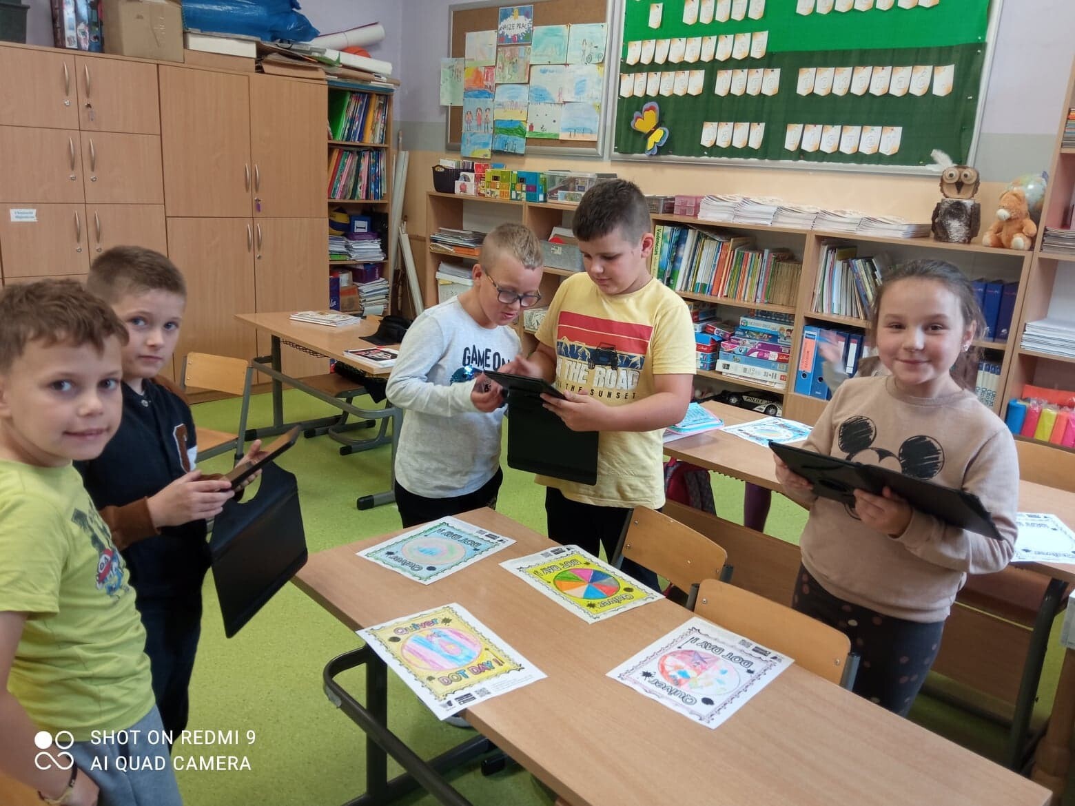 Uczniowie klasy III tego dnia obejrzeli krótki film o dziewczynce imieniem Vashti https://www.youtube.com/watch?v=rETI9cQxNgQ , od której wszystko się zaczęło. Następnie łączyli kreatywność z technologią i przy pomocy kolorowanek i aplikacji Quiver tworzyli multimedialne kropki , które zamieniały się w piłki plażowe czy bańki mydlane. Na koniec wykonali pracę plastyczną prezentującą stworzenie, które kojarzyło się wszystkim z dużą ilością kropek. To był bardzo ciekawy dzień.