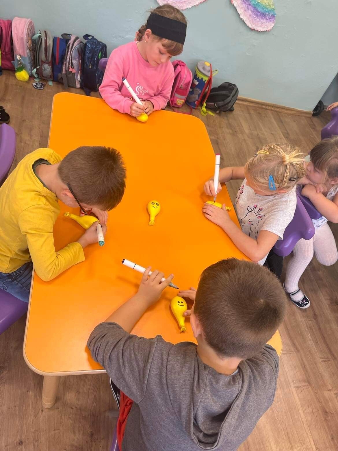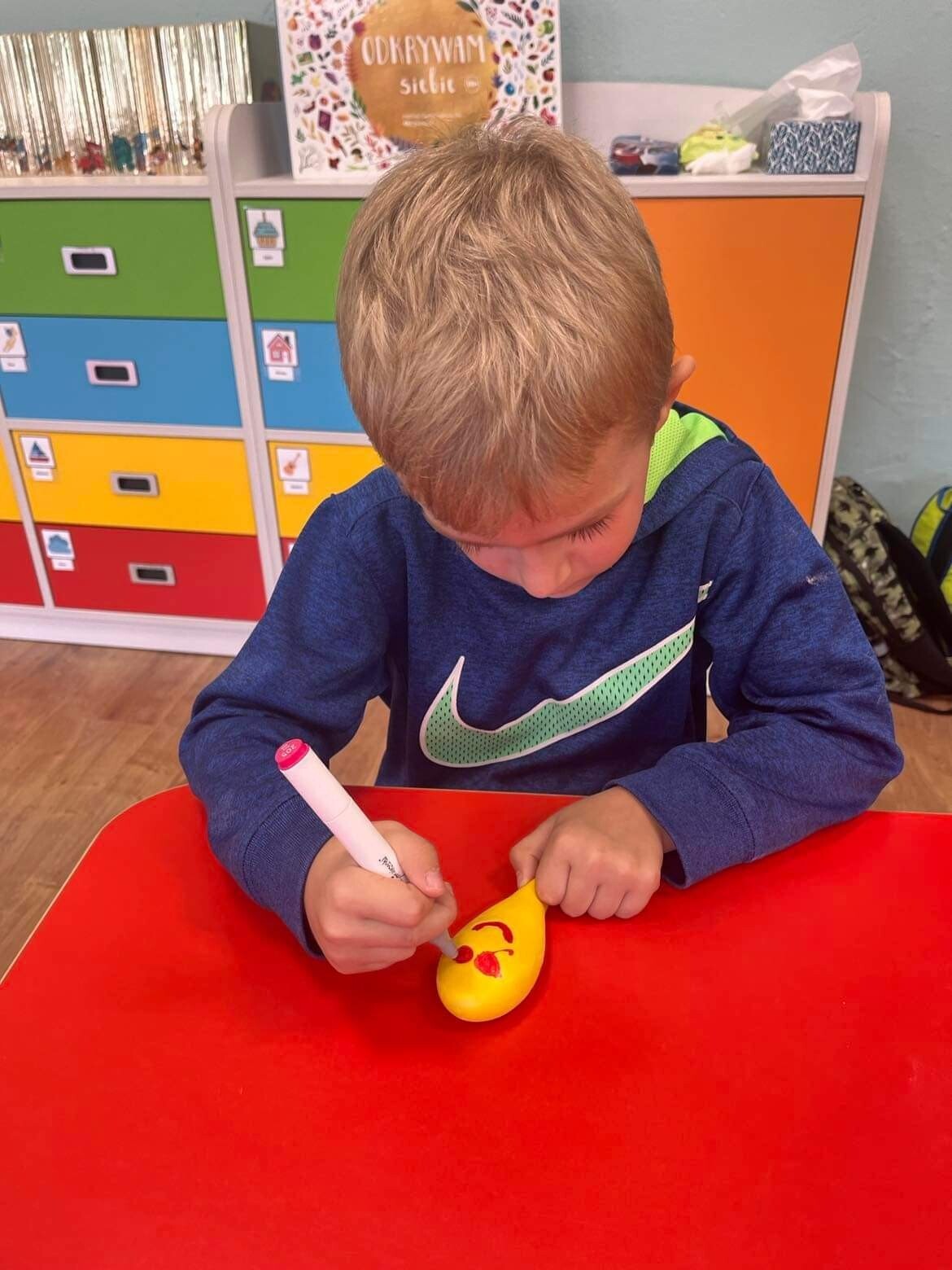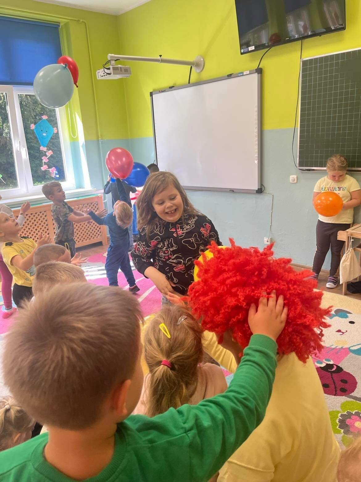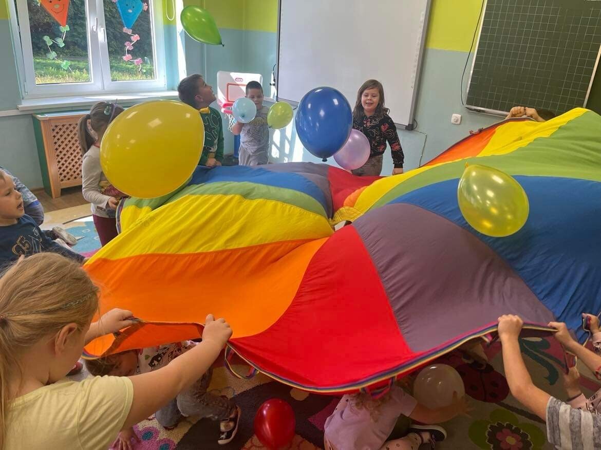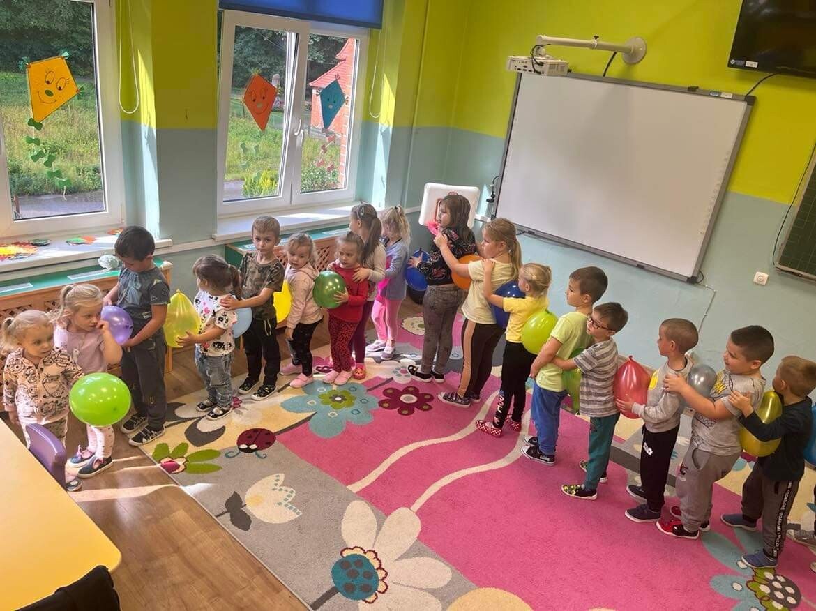Nie zabrakło zabaw z balonami. Dużą frajdę sprawiło dzieciom wykonanie przez nich samych, swojego własnego "gniotka", któremu nadawali przeróżne imiona. Zaskoczeniem były odwiedziny klauna.