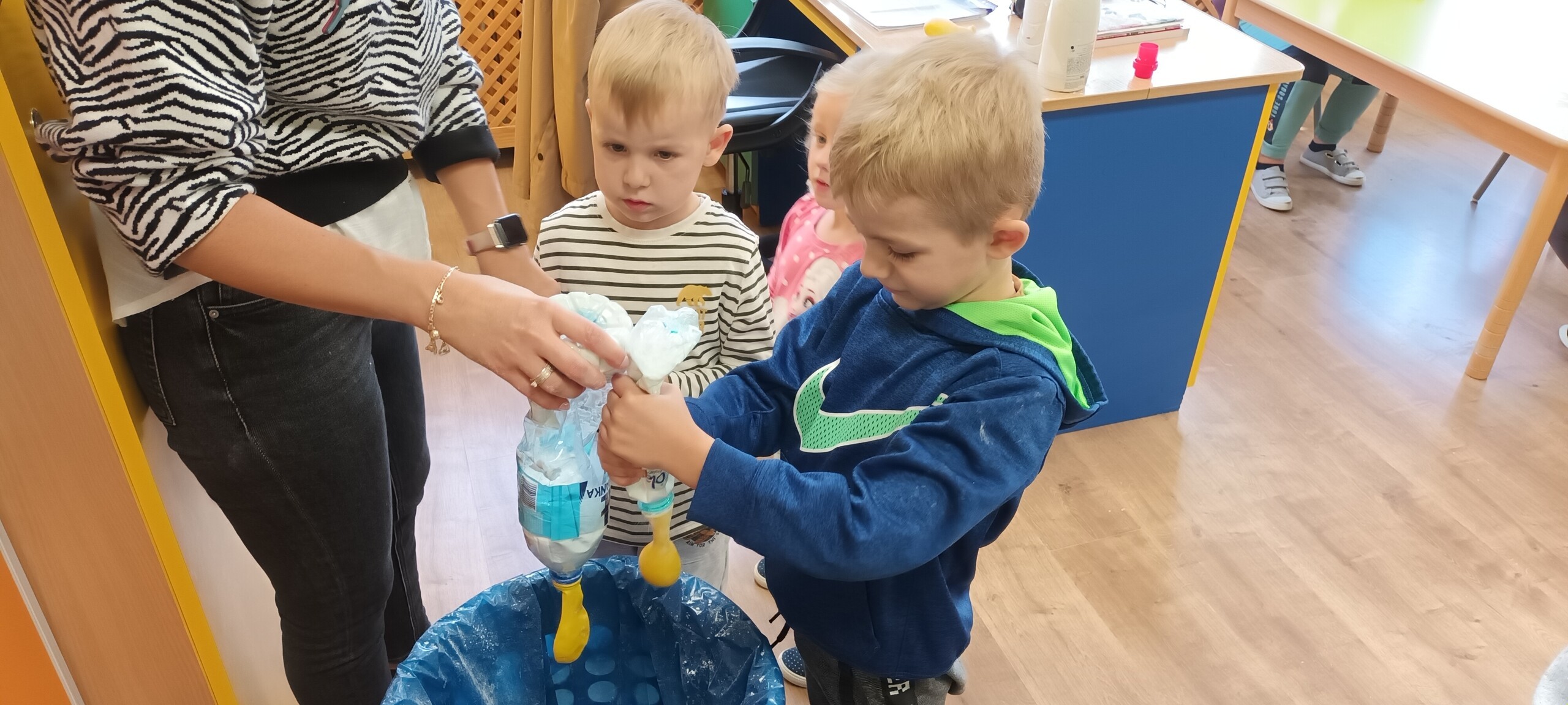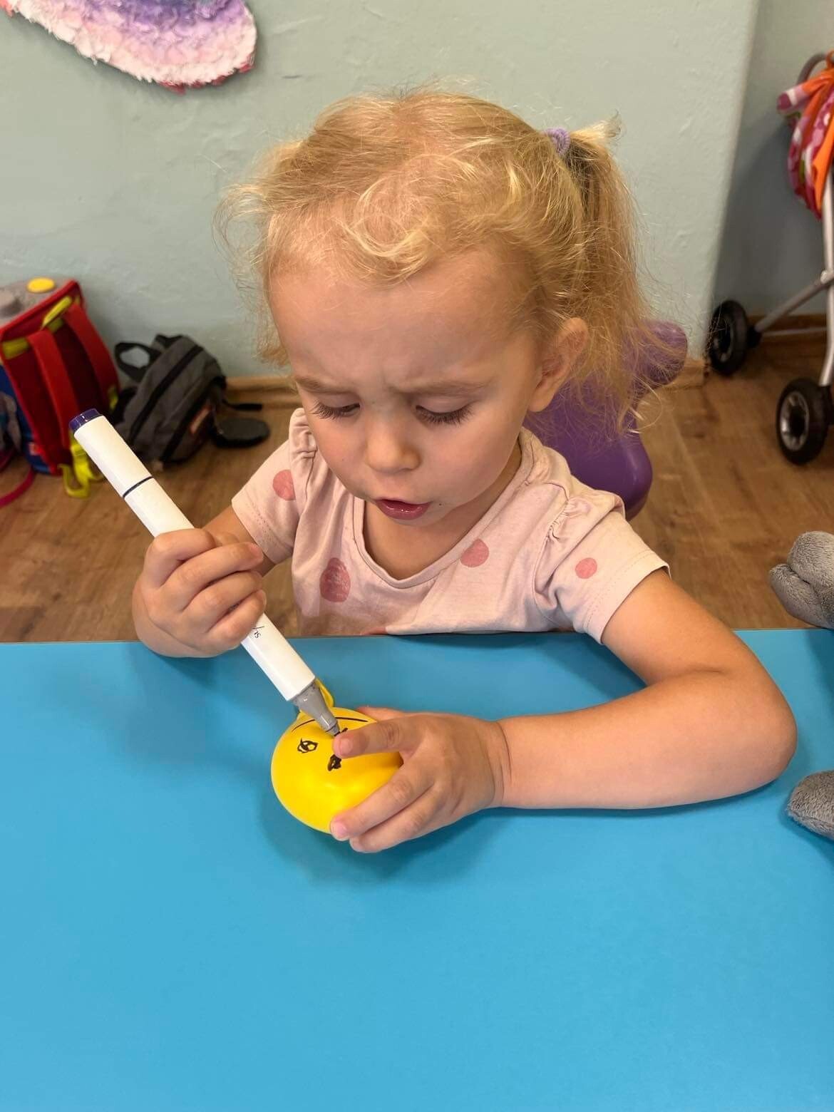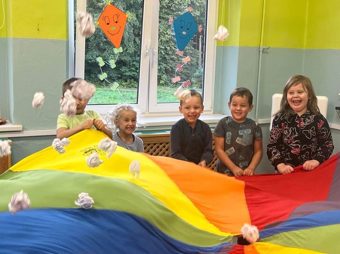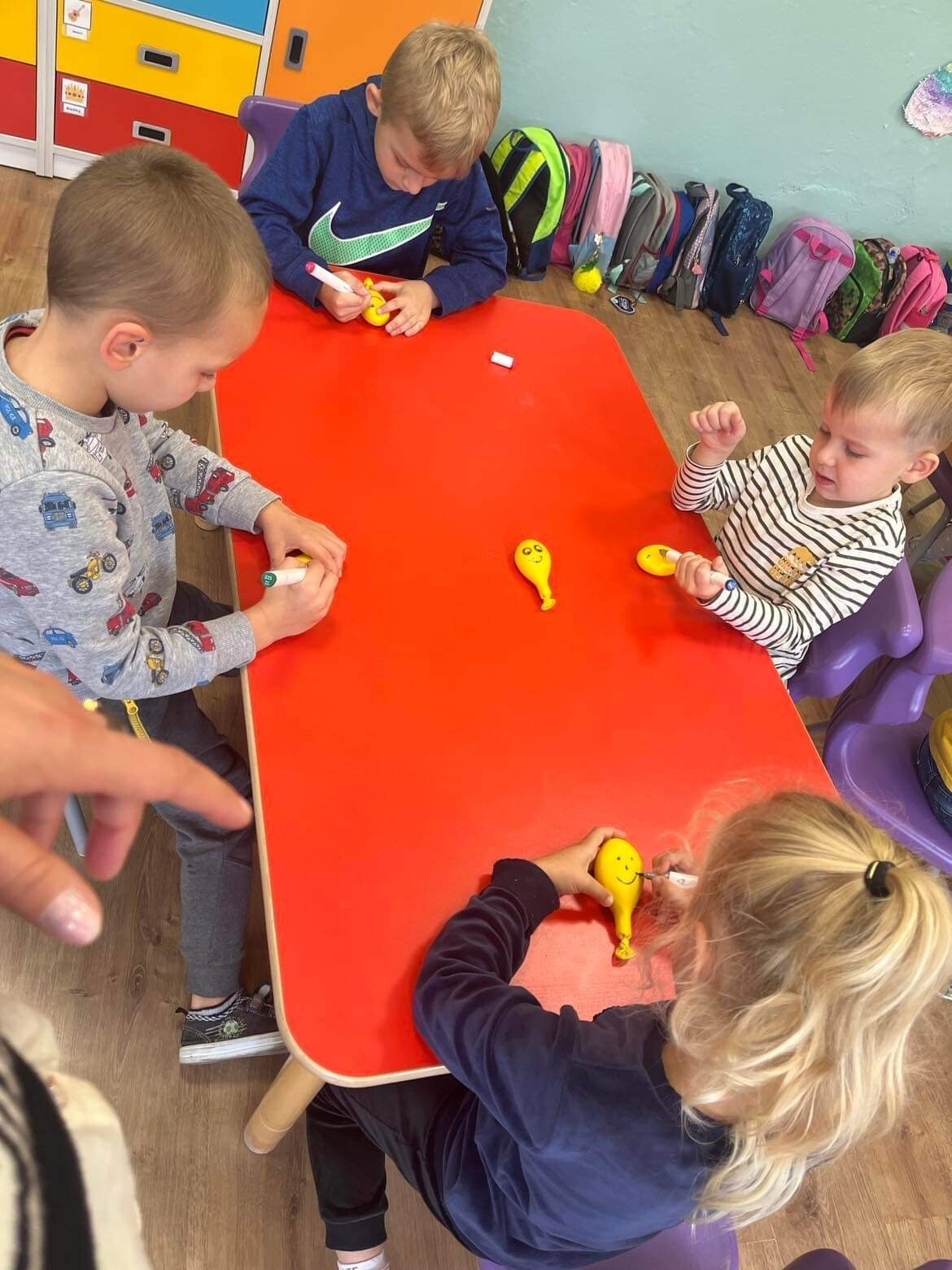 Nie zabrakło zabaw z balonami. Dużą frajdę sprawiło dzieciom wykonanie przez nich samych, swojego własnego "gniotka", któremu nadawali przeróżne imiona. Zaskoczeniem były odwiedziny klauna.