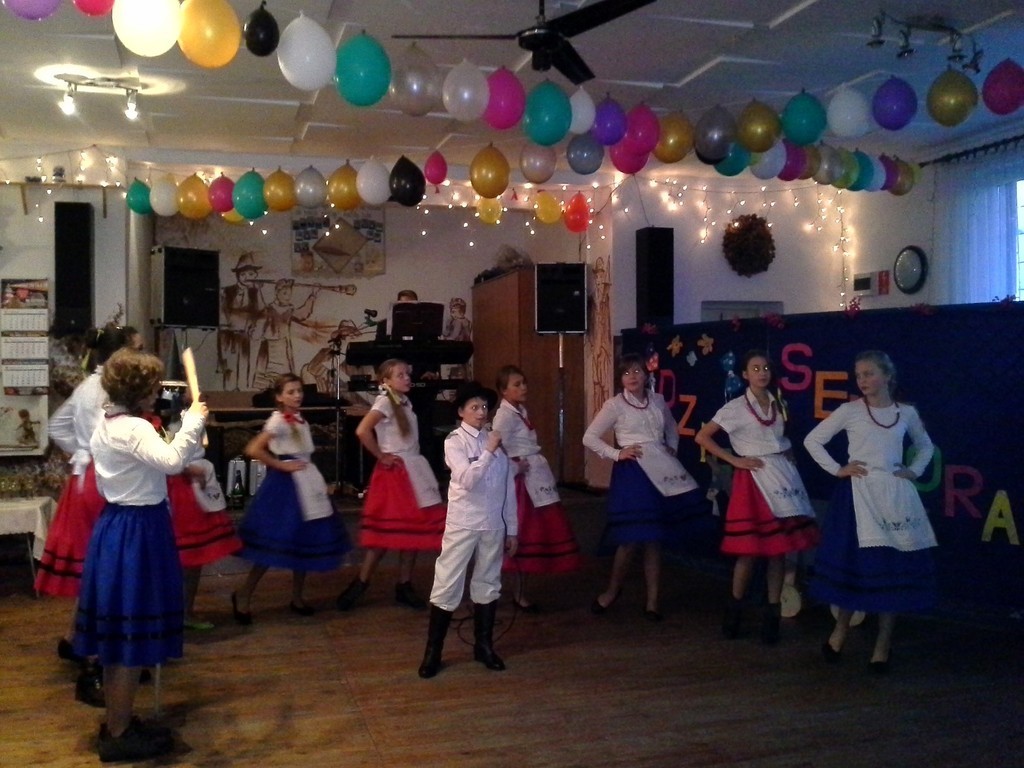25 października nasz szkolny kaszubski zespół „Kolorowe motylki” wystąpił na uroczystym Dniu Seniora w Mostach. Swoim śpiewem, muzyką i tańcem młodzież z klasy V i VI SP oraz II i III G rozweseliła twarze przybyłych seniorów i zaproszonych gości. W radosnej oraz pełnej życzliwości atmosferze wznieśliśmy też toast za ich zdrowie. Gorące brawa i słowa wdzięczności a także upominki i zaproszenie na kolejną uroczystość były najlepszym wyrazem uznania za występ naszej młodzieży.