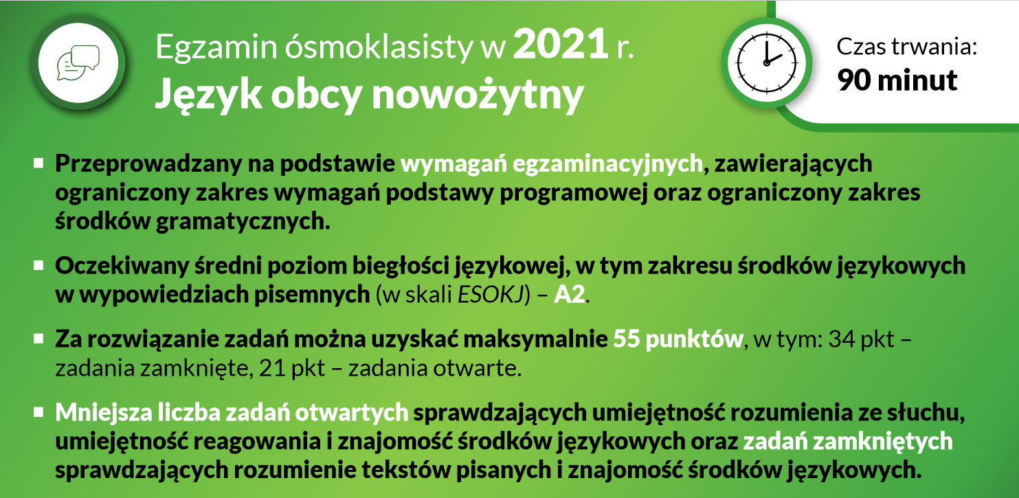 - Egzamin ósmoklasisty z języka obcego.