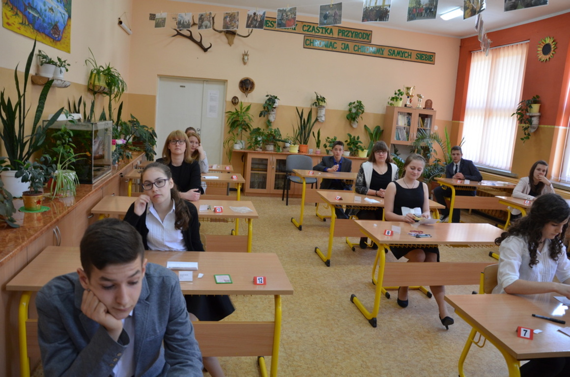 Nadszedł dzień próby dla gimnazjalistów z naszej szkoły. 21 kwietnia 2015 roku, uczniowie zmierzyli się z częścią humanistyczną. We wtorek 22 kwietnia 2015 przystąpili do egzaminów z matematyki i przedmiotów przyrodniczych, tj.: biologii, chemii, fizyki i geografii. 23 kwietnia uczniowie przystapili do egzaminów językowych.