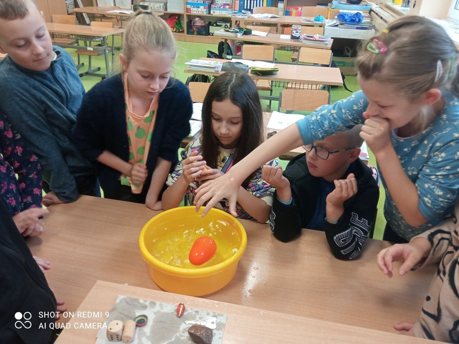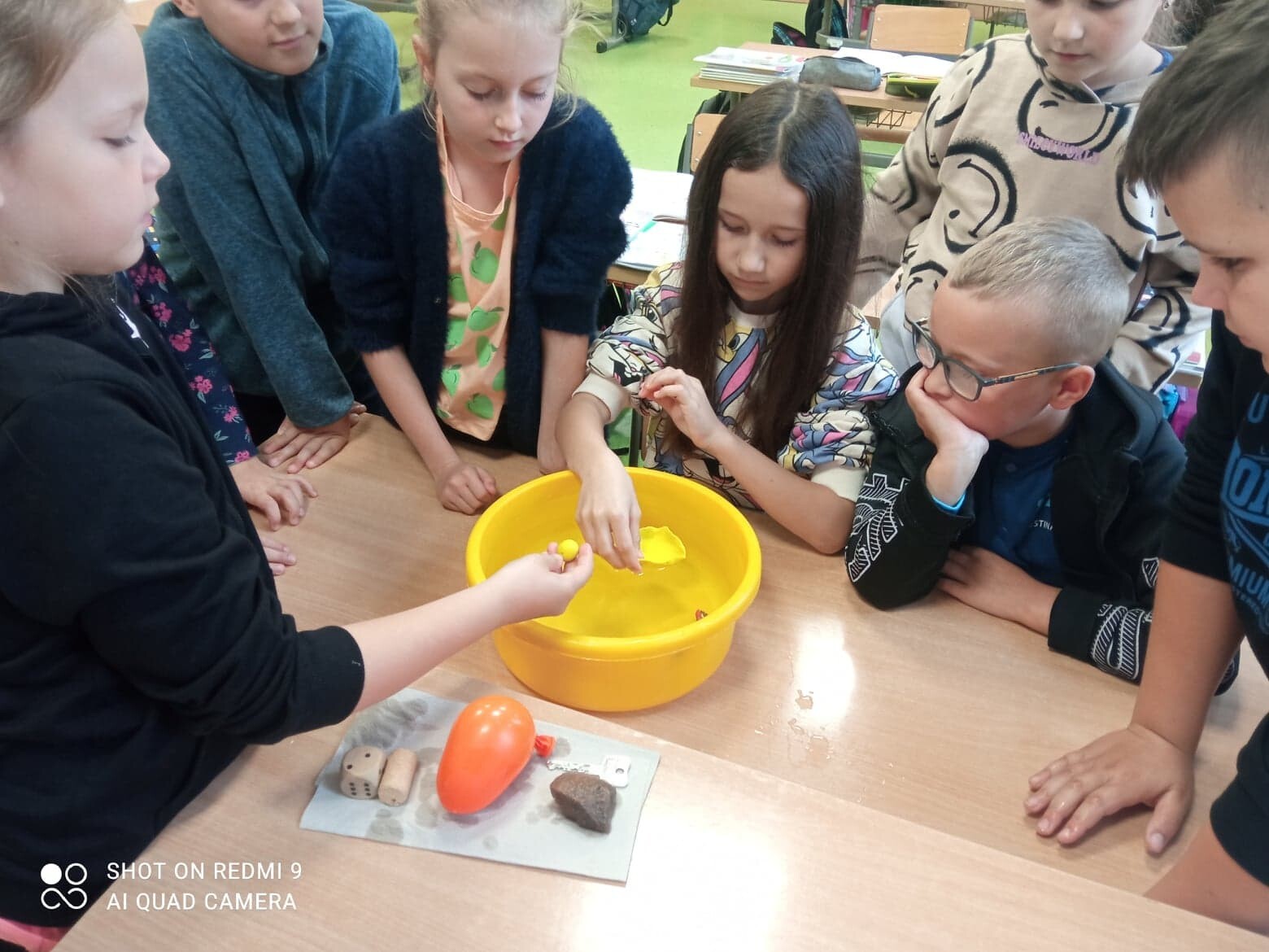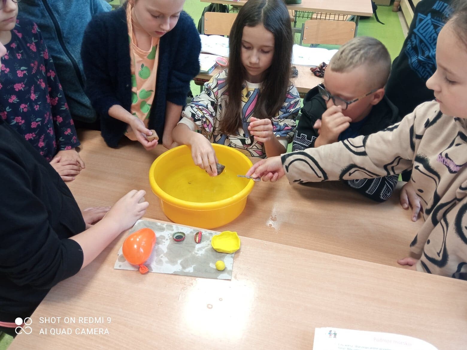 Ostatnio na zajęciach przyrodniczych uczniowie klasy III mogli sprawdzić jakie przedmioty użytku codziennego potrafią utrzymywać się na wodzie, które z nich natomiast toną bardzo szybko. W wyniku eksperymentu dzieci wyciągały bardzo trafne wnioski. Każde z nich chciało samodzielnie przeprowadzić doświadczenie. Zajęcia cieszyły się dużym zainteresowaniem.