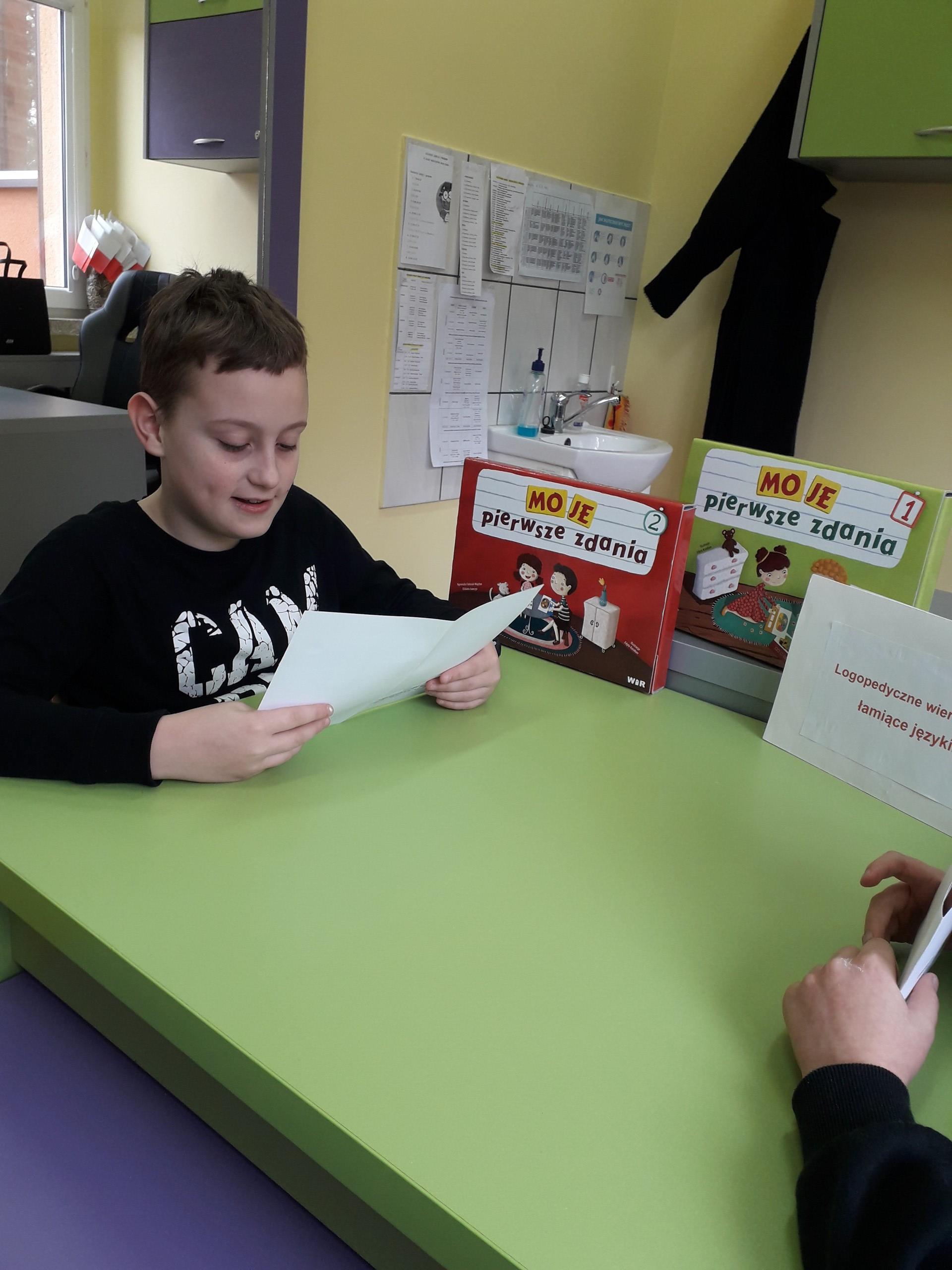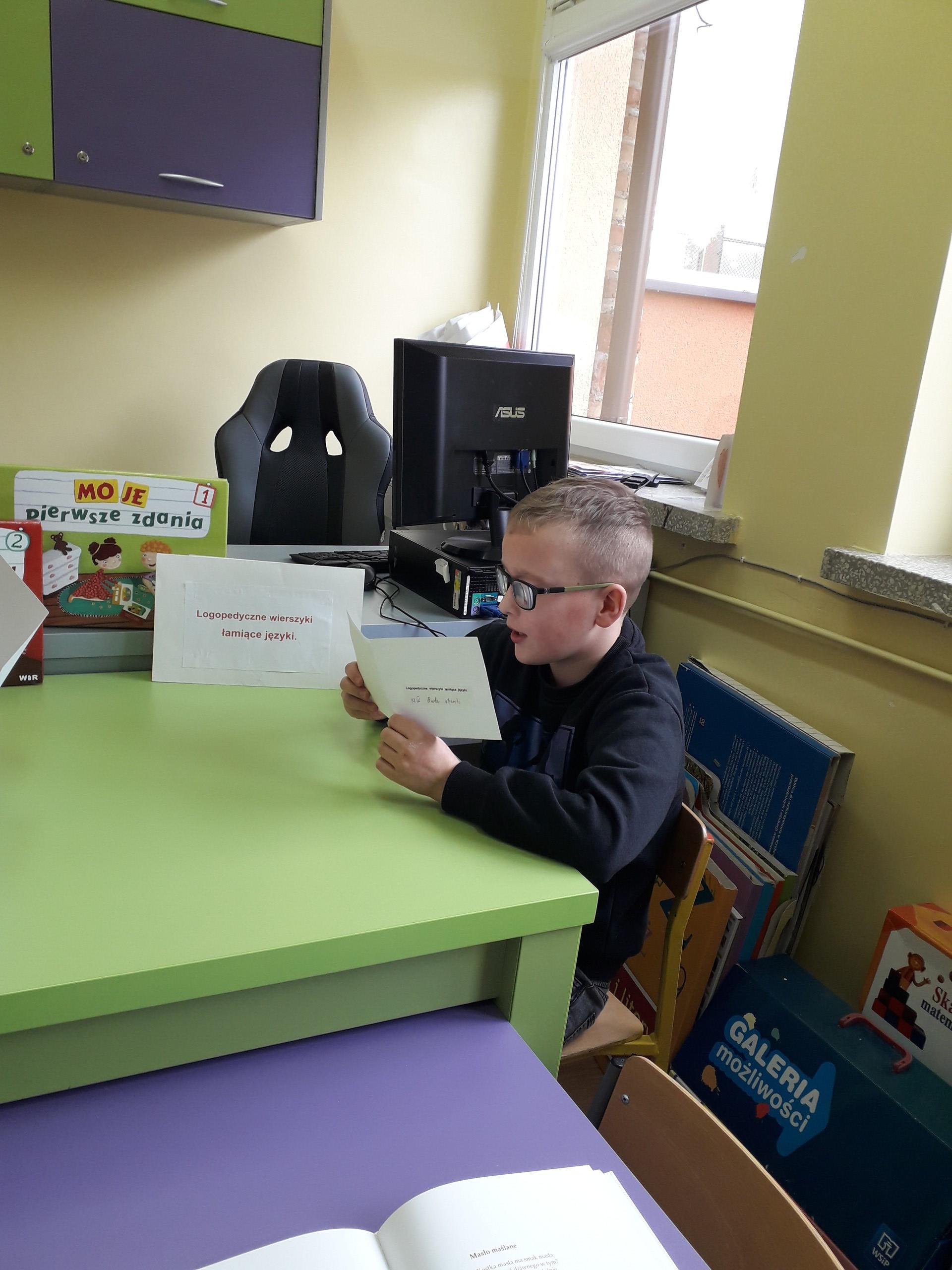 Z tej okazji uczniowie naszej szkoły uczęszczający na zajęcia logopedyczne brali udział w różnych formach aktywności. W grupie 3-4 latków i w grupie przedszkolnej zorganizowano zajęcia usprawniające aparat artykulacyjny. Dzieci wykonywały ćwiczenia oddechowe z użyciem piórek, baloników i baniek mydlanych. W kolejnym dniu uczniowie klas starszych ćwiczyły prawidłową i wyrazistą wymowę ćwiczonych głosek, wzbogacali zasób słownictwa. Wysiłek każdego został nagrodzony słodką nagrodą. W dniu 20 marca odbył się Logopedyczny Konkurs Czytelniczy dla klas I- V pt.„Wierszyki łamiące języki". Konkurs miał na celu utrwalenie wzorców poprawnej artykulacji oraz propagowanie polskiej poezji dla dzieci. Za piękną prezentacje wierszyka, uczniowie otrzymali dyplomy wyróżnienia.