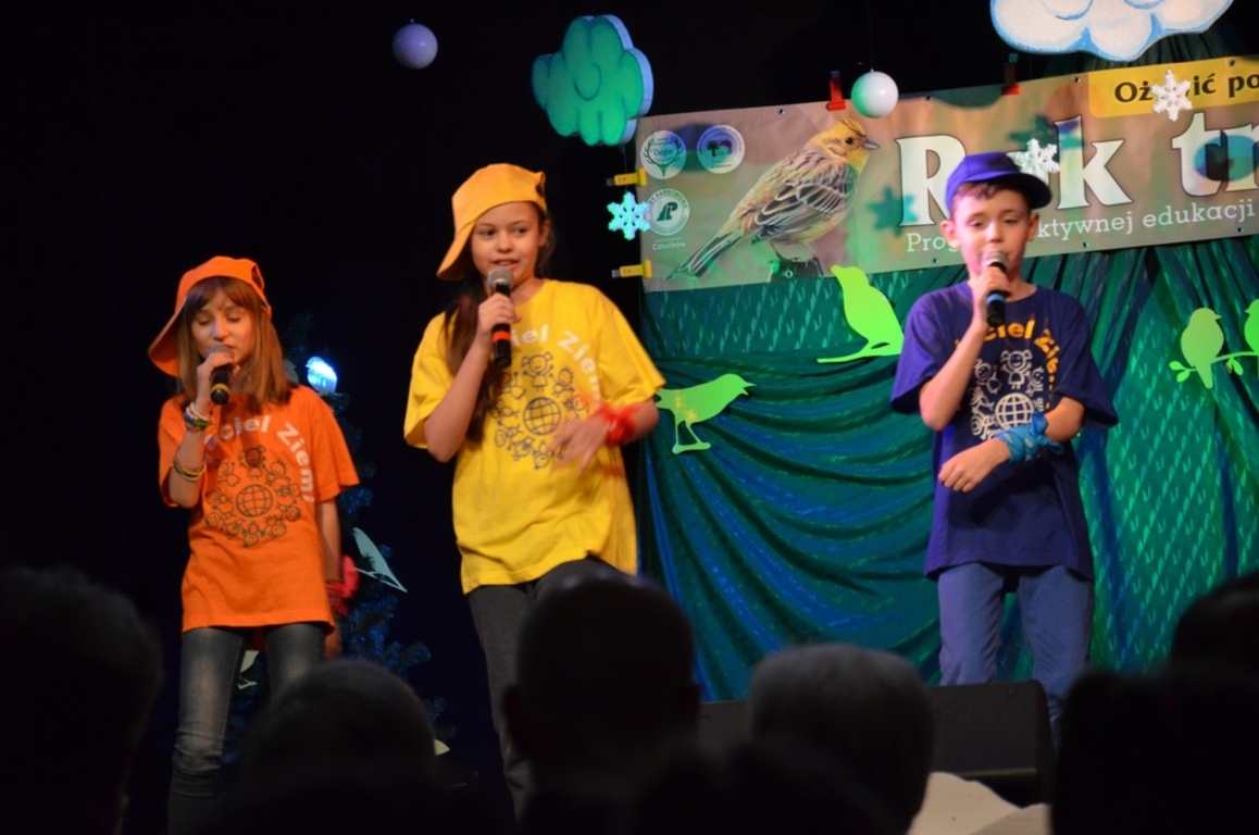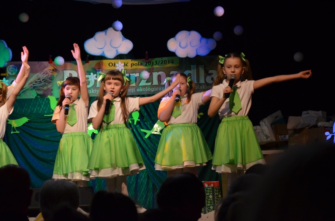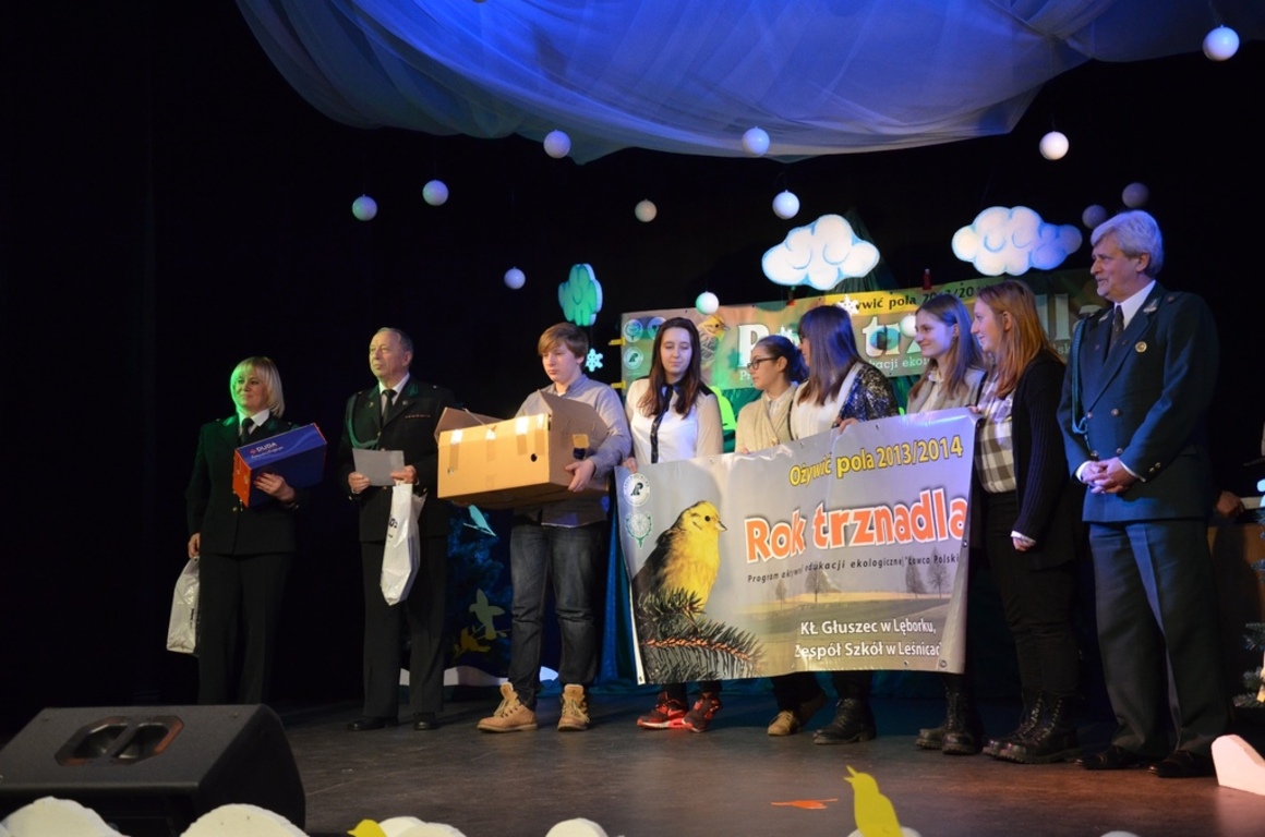 W roku szkolnym 2013/2014 nasza szkoła przystąpiła do Ogólnopolskiego Programu Ekologicznego „Ożywić pola”. Każdy rok patronuje jakiemuś zwierzęciu lub ptakowi. Tym razem był to mieszkaniec lasów, pól i łąk- mały, brązowo-żółty trznadel. Podejmowaliśmy mnóstwo akcji z zakresu edukacji ekologicznej, łowieckiej i przyrodniczej. Pomagali nam myśliwi z Koła Łowieckiego „Głuszec”. Dzięki ich wsparciu mogliśmy uczestniczyć w tym programie. Pierwsza nasza edycja i ogromny sukces ,ponieważ zakwalifikowaliśmy się do szerokiego finału i zostaliśmy jedną z 40 najlepszych szkół w Polsce, która przystąpiła do programu. Na finał regionalny dla województw pomorskiego, zachodniopomorskiego i kujawsko-pomorskiego zostaliśmy zaproszeni do Człuchowa. Finał prowadził główny koordynator pan Mirosław Głogowski. Otrzymaliśmy dyplomy dla szkoły oraz koordynatorów jak również piękne prezenty. Szczególne podziękowania należą się naszym wolontariuszom oraz myśliwemu panu Lechosławowi Bałwas, którzy poświęcili dużo pracy i włożyli wiele wysiłku w organizację projektów i imprez przyrodniczych. Nasza Radiowa Pani Wiewiórka czyli Katarzyna Lewańska –Tukaj promowała nasze działania w wielu czasopismach łowieckich i przyrodniczych oraz na stronach internetowych Polskiego Związku Łowieckiego. Przed nami kolejna już IX edycja programu ,tym razem będzie to Rok Bażanta. Zapraszamy do wspólnych działań całą społeczność uczniowską, nauczycieli, rodziców i myśliwych.