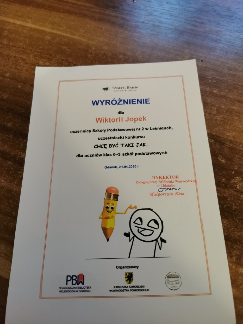 Nasze uczennice Wiktoria Jopek i Nikola Jopek wysłaly swoje prace i na kilkaset nadesłanych prac otrzymały wyróżnienie oraz nagrody książkowe.