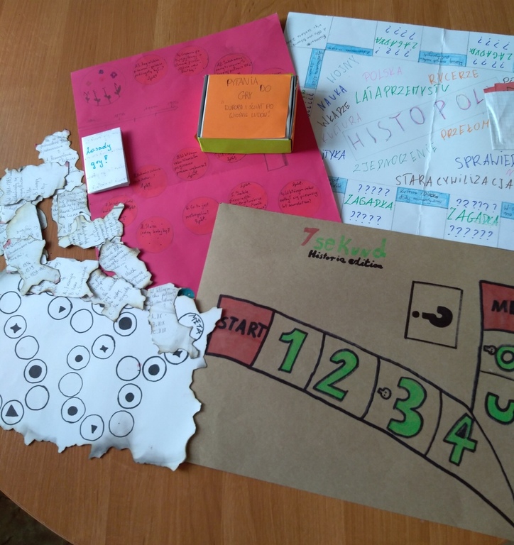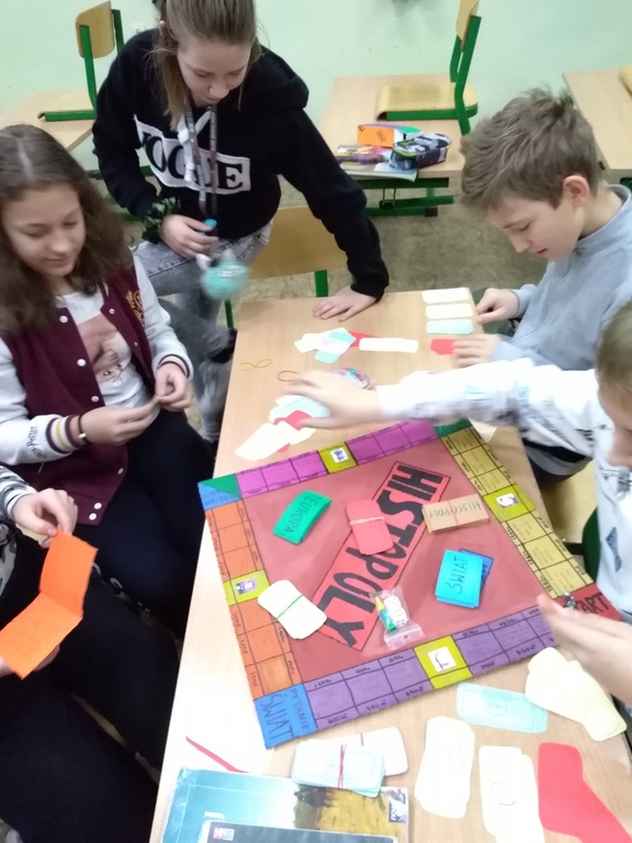 Czy można jednocześnie uczyć się i bawić? TAK! Uczniowie klasy VI i VII na lekcji historii grali w gry planszowe, które... wykonali samodzielnie w ramach lekcji powtórzeniowych. Każda planszówka dotyczyła innego tematu lekcji, nie zabrakło gry memory, kart, quizów oraz innych, autorskich wersji gier;-). Okazało się, że lekcja powtórzeniowa może być ciekawa.