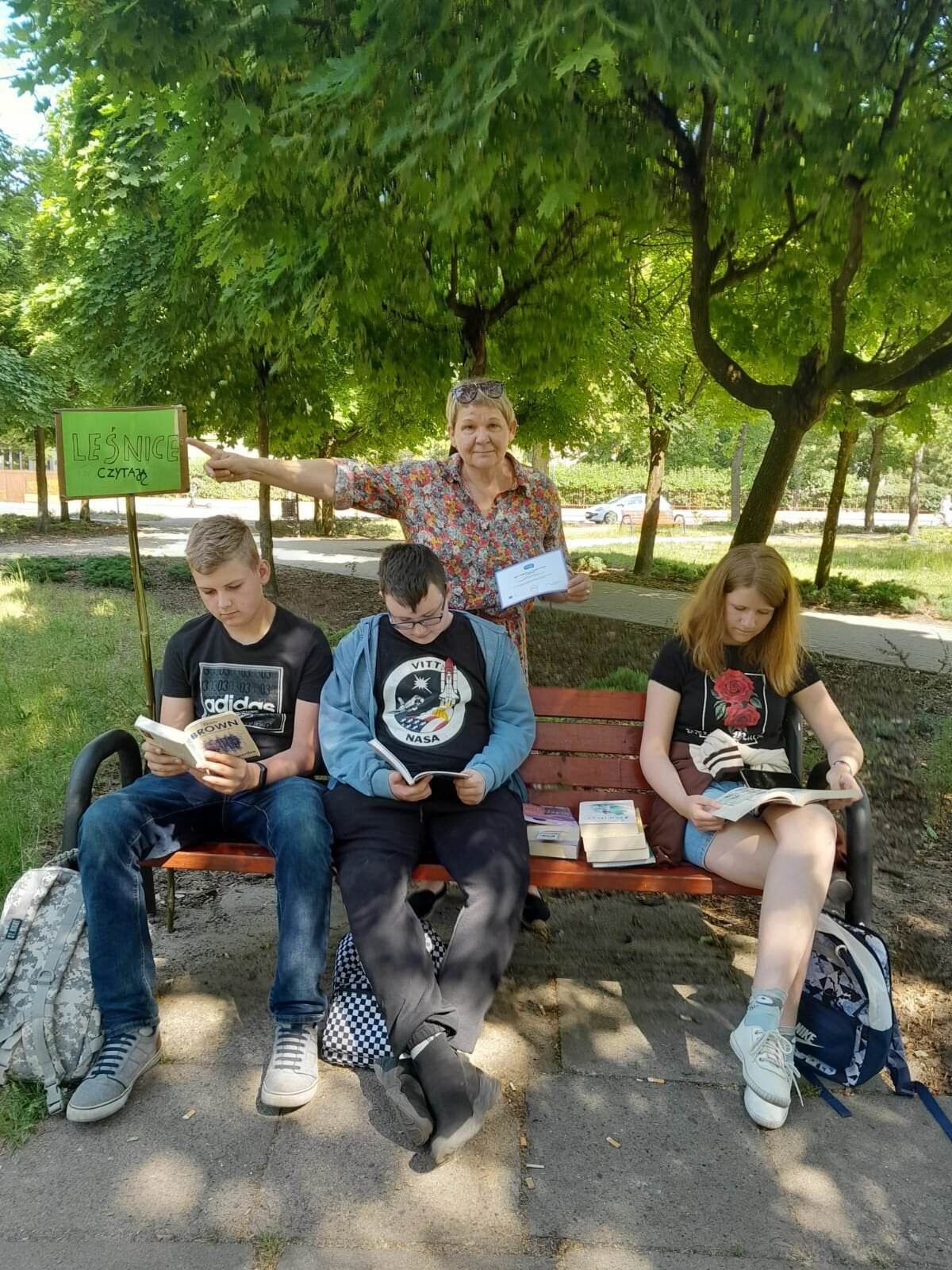 7 czerwca o godzinie 10.00 kilkaset tysięcy osób z całej Polski czytało książki. W parku im. Michalskiego w Lęborku spotkali się miłośnicy czytania, przedszkolaki, uczniowie szkół podstawowych i średnich. Nasi uczniowie z klasy VIII także wzięli udział w tej wspaniałej akcji ( Maja Dołębska, Amelia Formela, Piotr Janneck, Andrzej Pepliński). W przemiłej atmosferze wszyscy czytali swoje ulubione książki, wymieniali się spostrzeżeniami, proponowali nowe i ciekawe tytuły. Akcja pokazała, że młodzi ludzie czytają, ale… to, co lubią.