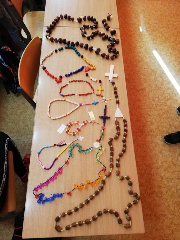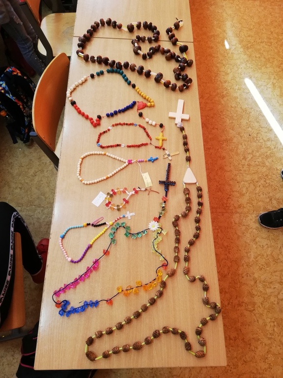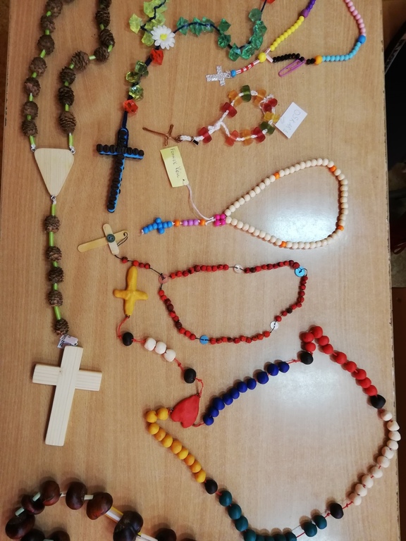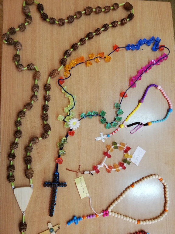 Konkurs na samodzielnie wykonany najpiękniejszy różaniec został rozstrzygnięty. Do konkursu przystąpiło blisko 50 uczniów naszej szkoły. Różańce wykonane były z różnorodnych materiałów, w bardzo ciekawy i niepowtarzalny sposób. Zwycięzcami konkursu w klasach 4 latki. - 3 kl. zostali: I miejsce: ex aequo Aleksandra Knioch i Karol Kozłowski; II miejsce: ex aequo NadiaWiczkowska i Zofia Bieluch; III miejsce: ex aequo Lena Jarzębińska i Oskar Borek; w klasach: IV-VIII zwyciężyli: I miejsce Nikola Kubica; II miejsce Liliana Cieszkowska; III miejsce Tymoteusz Bieluch; wyróżnienie Julia Rudniewska. Wszystkim uczestnikom dziekujemy za tak liczny udział i serdecznie gratulujemy.