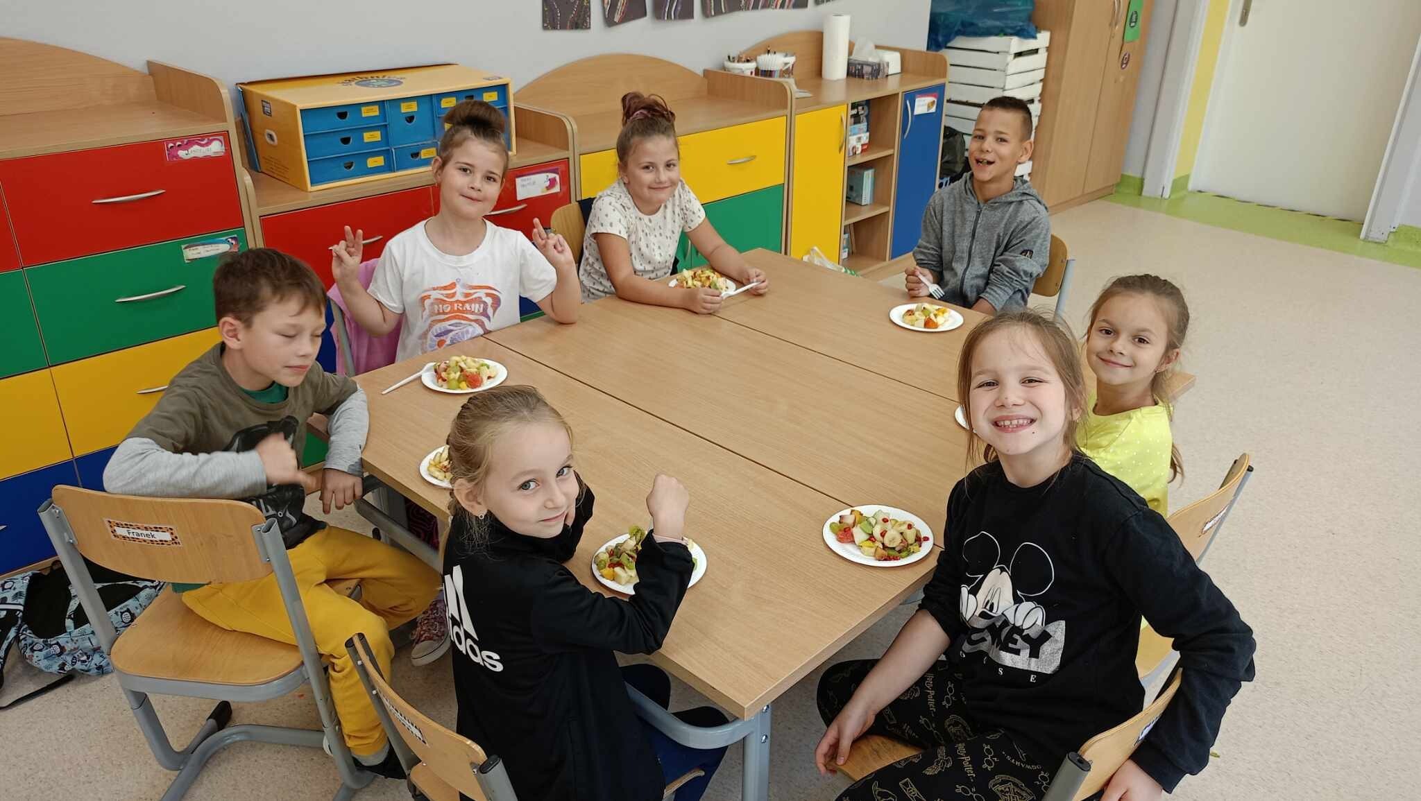 W tym tygodniu uczniowie klasy 2 przywitali jesień. Wspólnie na spacerze obserwowaliśmy zmiany zachodzące w przyrodzie, poznaliśmy skarby sadu i ogrodu, dowiedzieliśmy się jakie jesienne smakołyki ofiaruje nam las. Na podsumowanie uczniowie wykonali wspólnie sałatkę z jesiennych przysmaków.