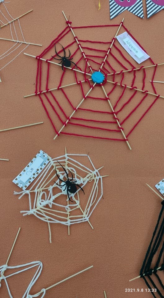 Dzieci zaopatrzone w patyczki i kolorowe sznurki tkały własne nici babiego lata.