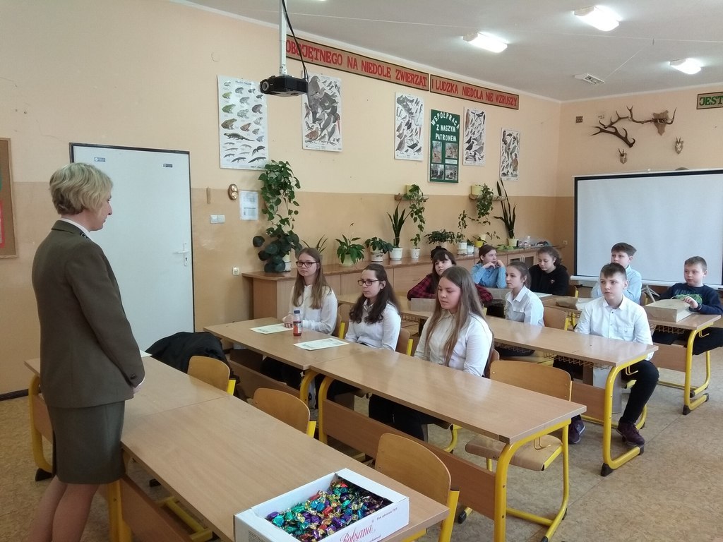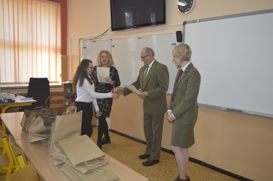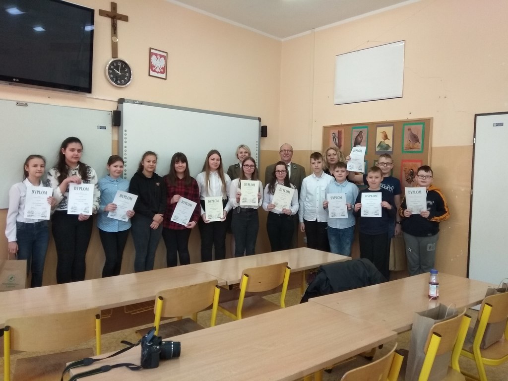 W naszej szkole odbył się Szkolny Konkurs Wiedzy "Cuda lasu". Uczestniczyli w nim uczniowie klas 5-8. Test konkursowy zawierał pytania zamknięte i otwarte z zakresu życia zwierząt, rozpoznawania gatunków drzew, ochrony i ogólnej wiedzy o lesie. Rozsztrzygnięcie konkursu odbyło się przy współpracy Nadleśnictwa Lębork, głównego sponsora nagród. Wyniki konkursu: