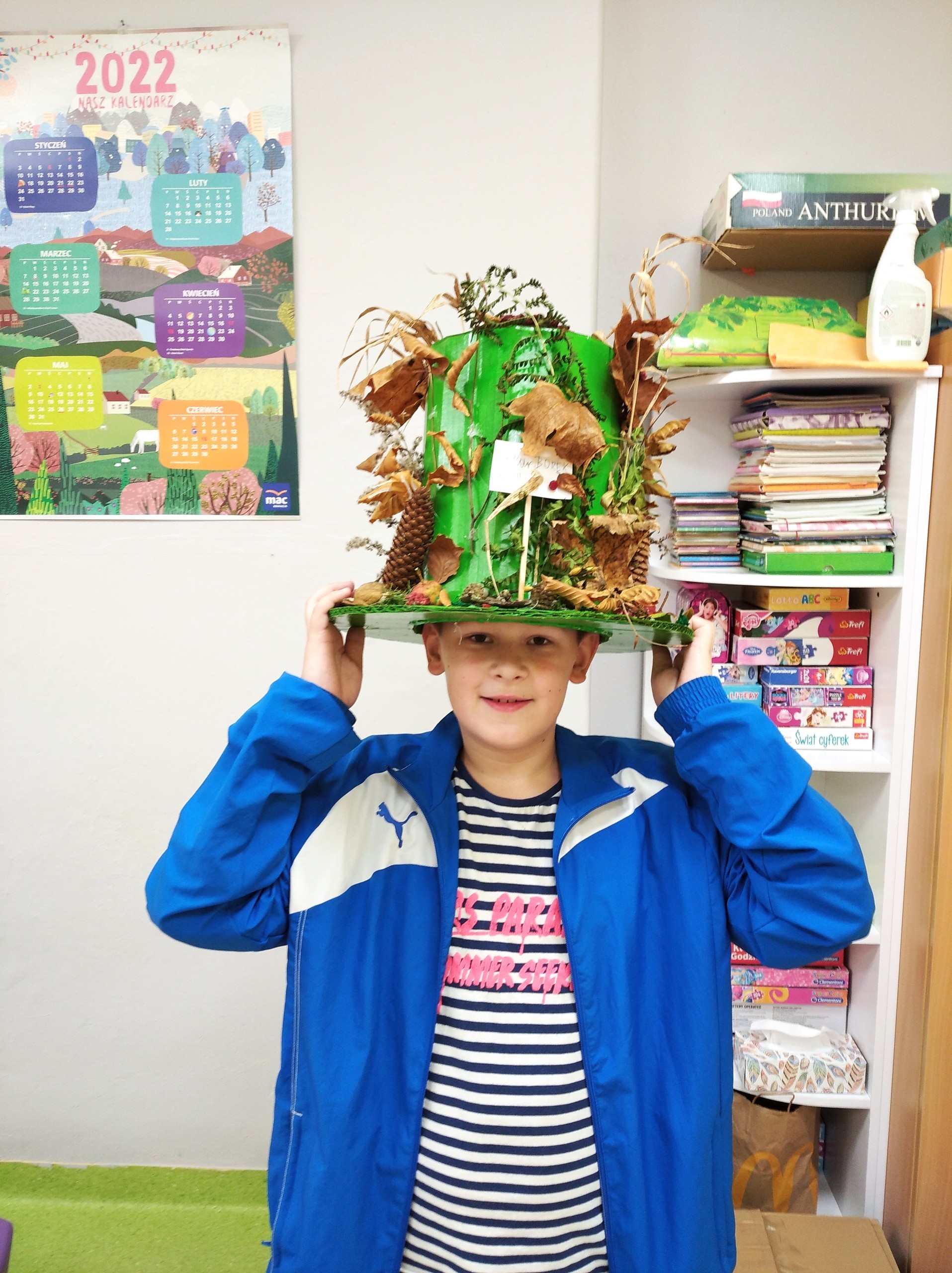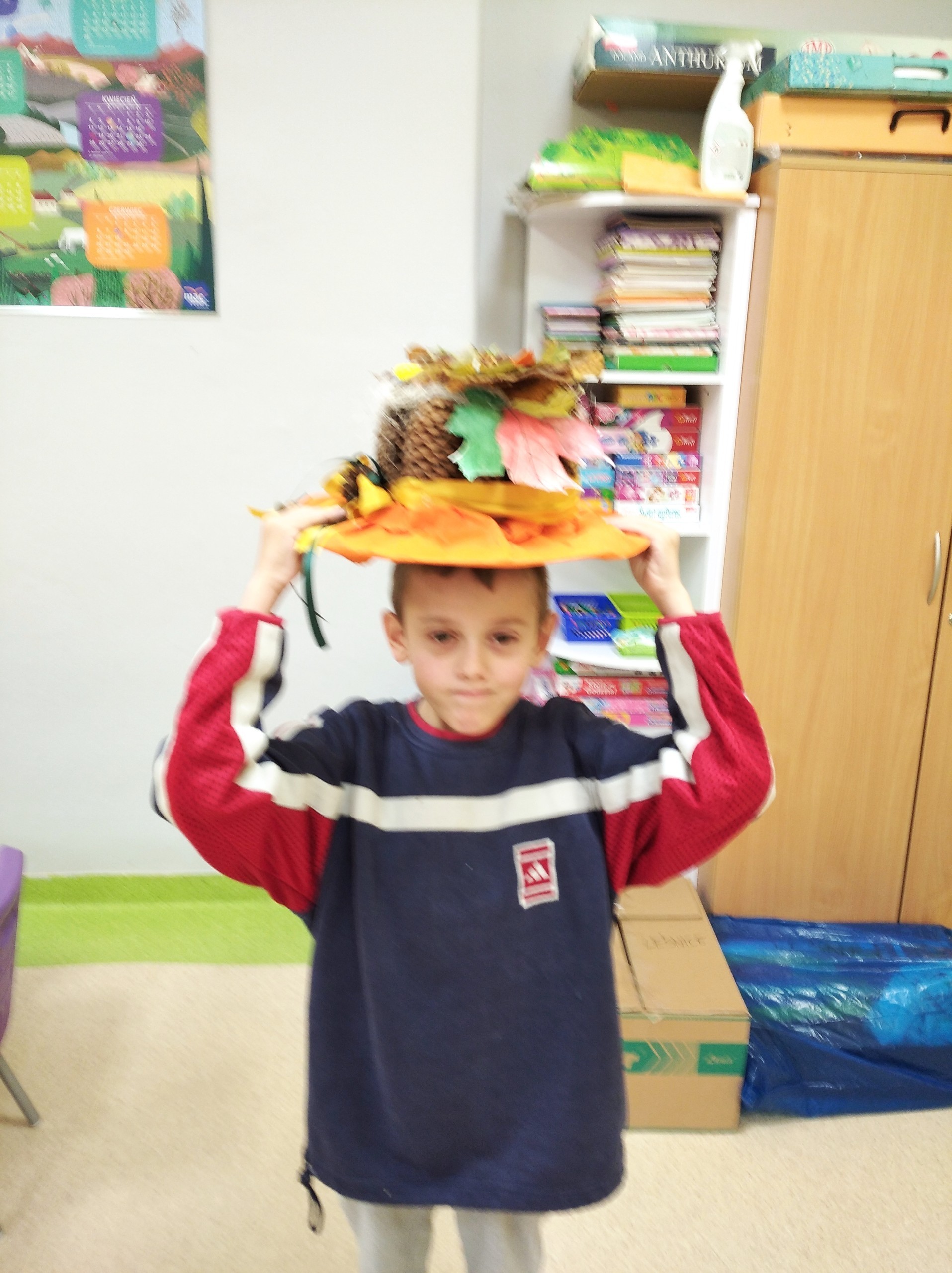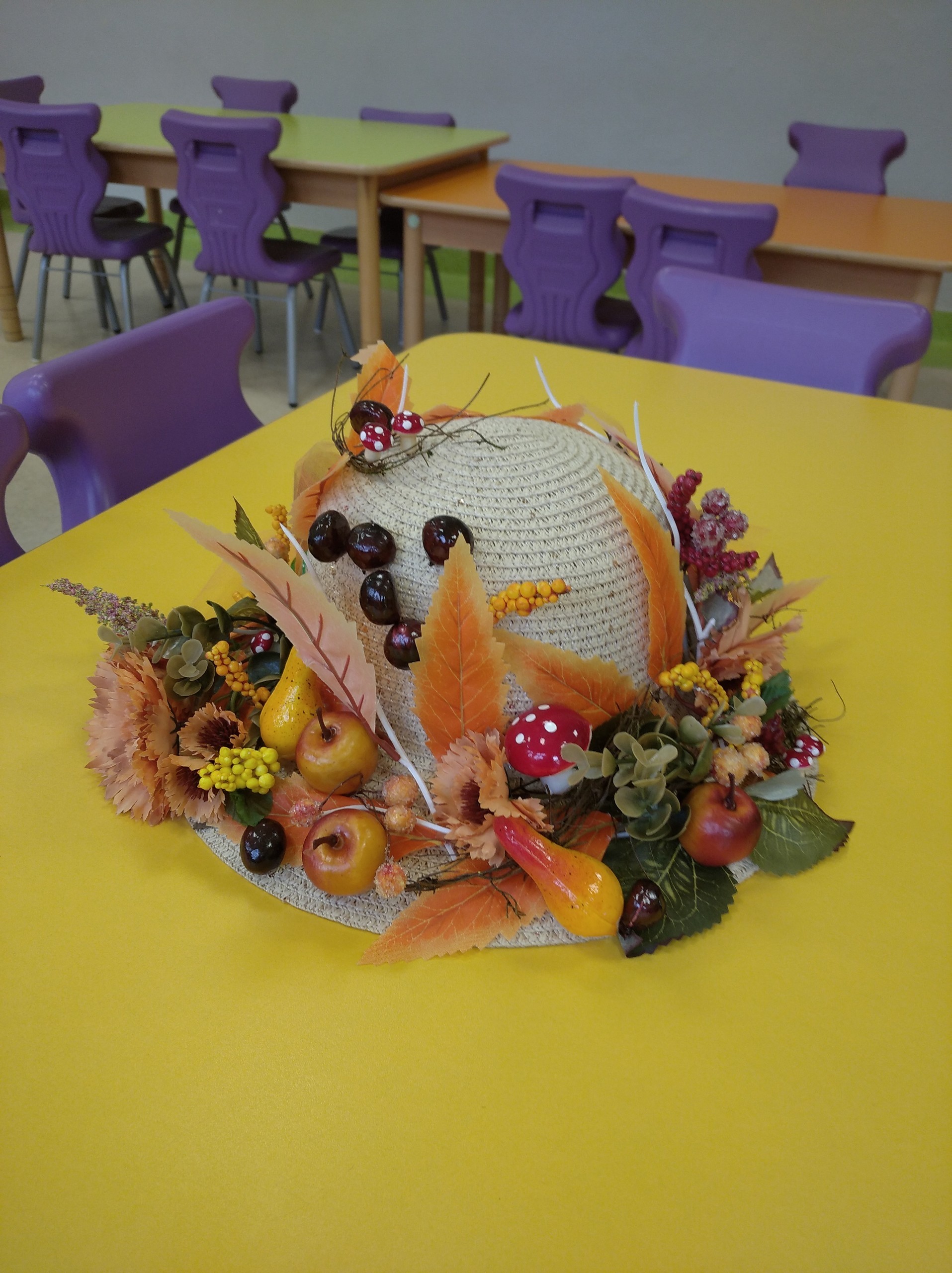 W naszej szkole dla oddziału przedszkolnego i klas I-III ogłoszony został konkurs na jesienny kapelusz. Udział w konkursie wzięło szesnaścioro dzieci. Celem konkursu było rozwijanie kreatywności , dostrzeganie piękna natury. Wszyscy uczestnicy konkursu wykonali kapelusze, używając różnorodnego materiału przyrodniczego: liście, żołędzie, kasztany, szyszki, kwiaty i wiele innych darów jesieni.
