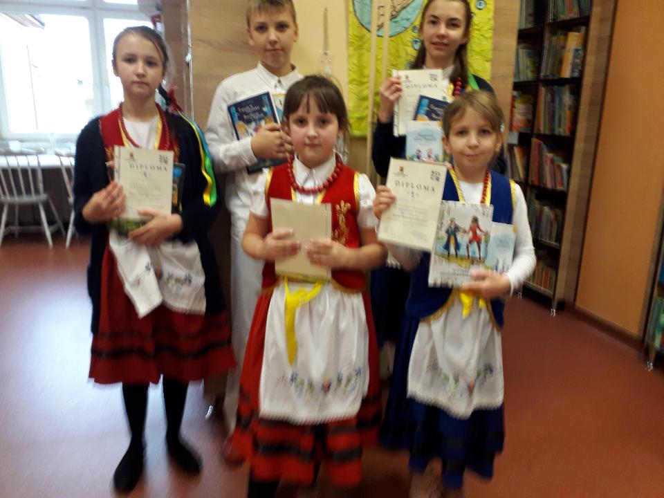3 grudnia Małgorzata Sikorska, Maja Pieniak, Zuzanna Jereczek, Filip Kondracik i Anastazja Papke reprezentowali naszą szkołę w VI Powiatowym Konkursie Pięknego Czytania ,,Méster Bëlnégò Czëtaniô” organizowanym przez Zrzeszenie Kaszubsko – Pomorskie O/Lębork. Zadaniem uczestników konkursu było wyraźne, poprawne i płynne przeczytanie wylosowanego tekstu kaszubskiego. Nasi uczniowie poradzili sobie znakomicie plasując się w ścisłej czołówce. II miejsce w swoich kategoriach zajęły Małgosia Sikorska przygotowana przez p. Marzenę Maszota i Anastazja Papke przygotowana przez p. Anettę Wolską. Tym samym uczennice te zakwalifikowały się do etapu wojewódzkiego. Szczerze im gratulujemy i trzymamy kciuki!