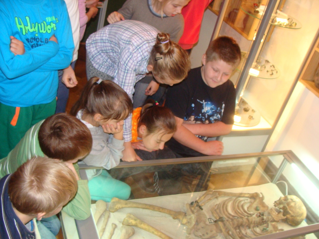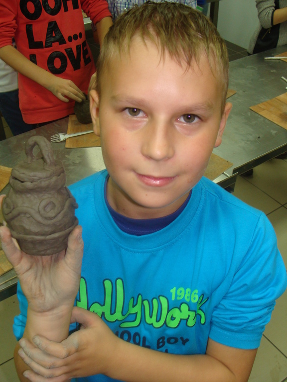 Dnia 21.X.2014 roku klasa IV realizując hasło „Poznajemy naszą małą Ojczyznę” w ramach lekcji historii odbyła ciekawą wycieczkę do Lęborka. Po przyjeździe uczniowie zapoznali się ze średniowieczną architekturą miasta . Zafascynowały ich potężne mury obronne oraz majestatyczne baszty. Następnie udaliśmy się do miejscowego muzeum na lekcję historii- „Najdawniejsze zabytki Ziemi Lęborskiej na podstawie wystawy archeologicznej”. Dowiedzieliśmy się jak w pradawnych czasach epoki kamienia i epoki żelaza żyli nasi przodkowie. Szczególne zainteresowanie wzbudziły pradawne sposoby wzniecania ognia , wiercenia w kamieniu , a przede wszystkim nietypowe formy grzebania ciał zmarłych. Wzbogaceni wiadomościami z zakresu teorii udaliśmy się do pracowni garncarskiej na warsztaty praktyczne. Każdy uczestnik zajęć miał możliwość wykonania własnoręcznie naczynia ceramicznego z gliny ,tak jak to robili przed wiekami nasi przodkowie. Po kilkudziesięciu minutach wytężonej pracy , zadowoleni prezentowaliśmy swoje „dzieła” rzemiosła garncarskiego. Oby takich ciekawych i pożytecznych lekcji było w przyszłości jak najwięcej. Na koniec pożegnaliśmy się z obsługą muzeum gromkim zawołaniem : „Jak było?” „Kaczo” „Jak było?” „Byczo” „Jak było?” „Kaczo, byczo i indyczo”.