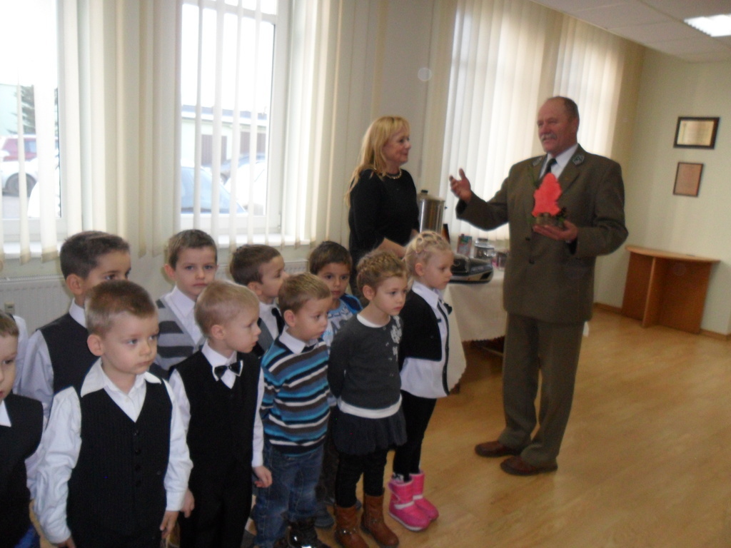Od wielu lat dzieci z oddziału przedszkolnego przy ZS Leśnice kolędują. Dnia 05.12.2014 roku wspólnie z panią dyrektor Mariolą Motyl i w-ce dyrektor Bogusławą Dominiecką składaliśmy życzenia świąteczne pracownikom Nadleśnictwa Lębork ( patrona naszej placówki).