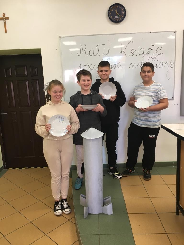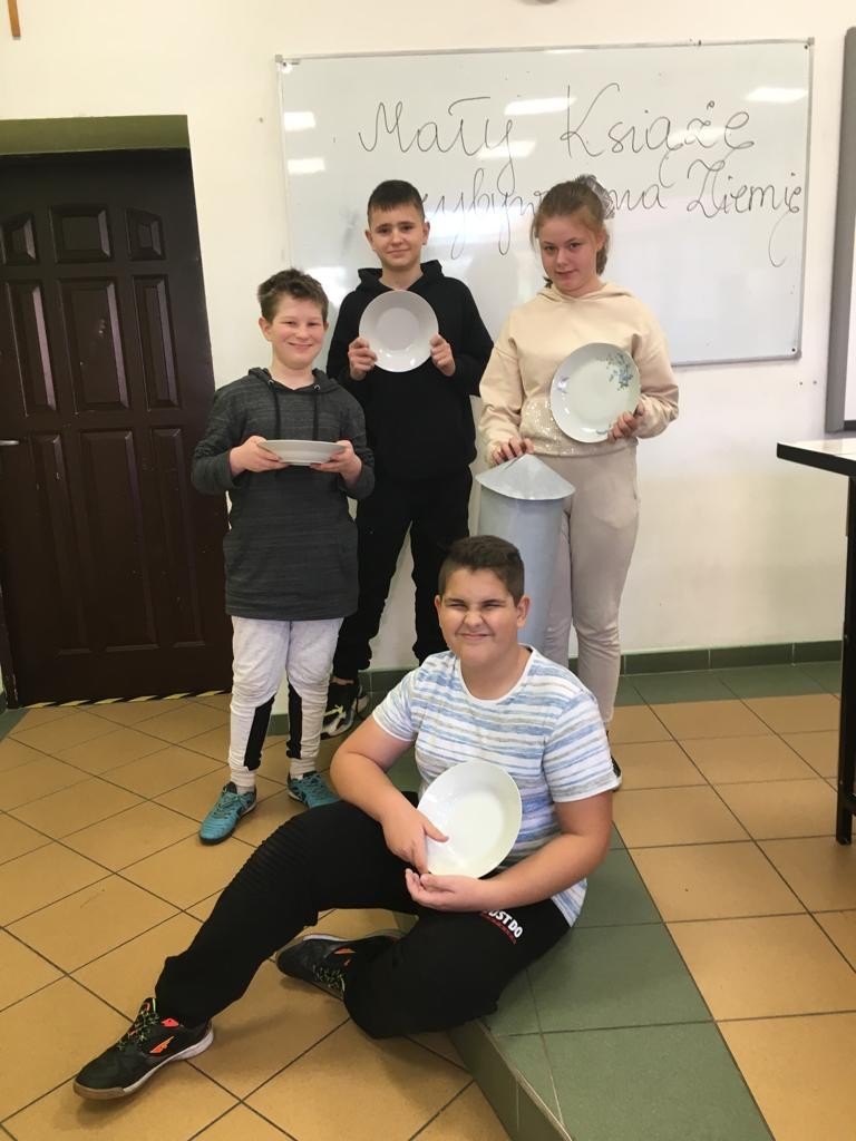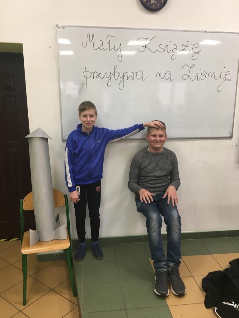 Klasa VII przygotowała dwie inscenizacje zainspirowane ostatnio omawianą lekturą "Mały Książę" pod wspólnym tytułem "Mały Książę przybywa na Ziemię". Bohater przybywa na naszą planetę i odwiedza Czarnobyl (miejsce wyjątkowo tragiczne) oraz restaurację, w której pojawia się Magda Gessler. Rozmowy Księcia z mieszkańcami Ziemi zasygnalizowały bardzo ważne tematy dotyczące losów naszej planety. Małego bohatera zadziwiły działania człowieka, które zagrażają Ziemi. Plastik, skażone środowisko deszczami nuklearnymi, obojętność na to, co jemy i ile żywności wyrzucamy.