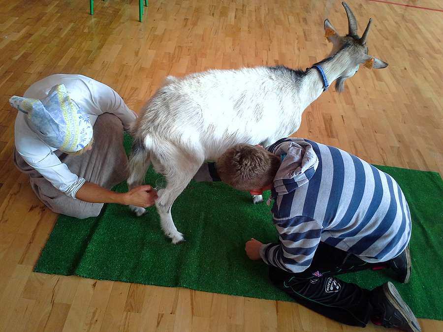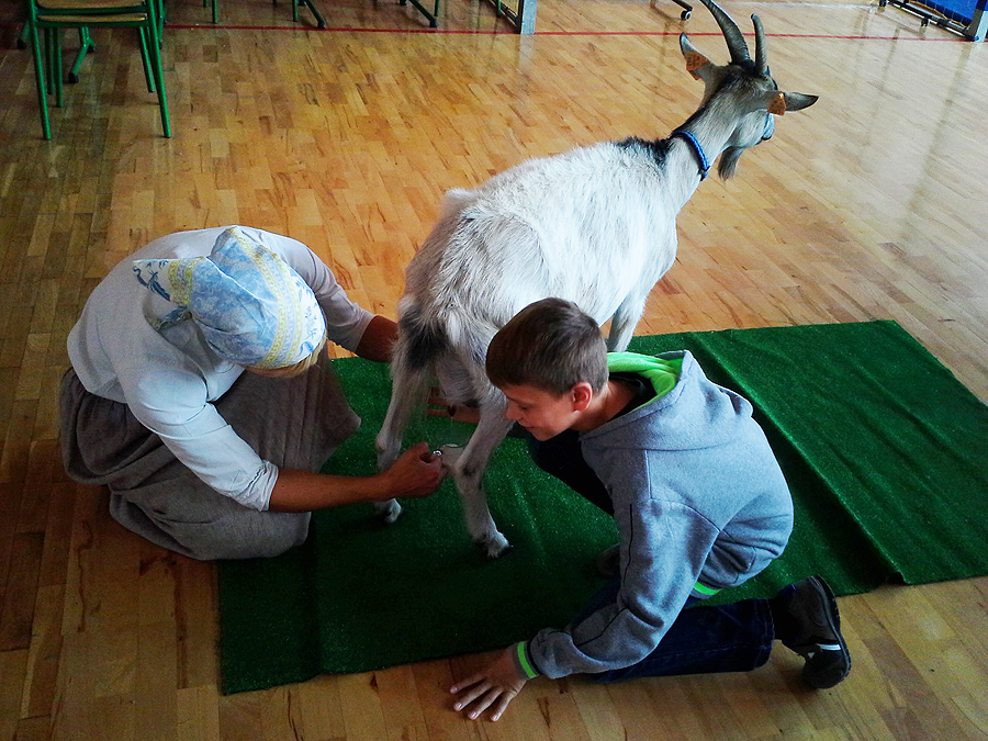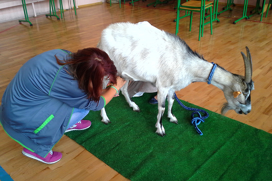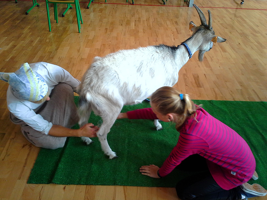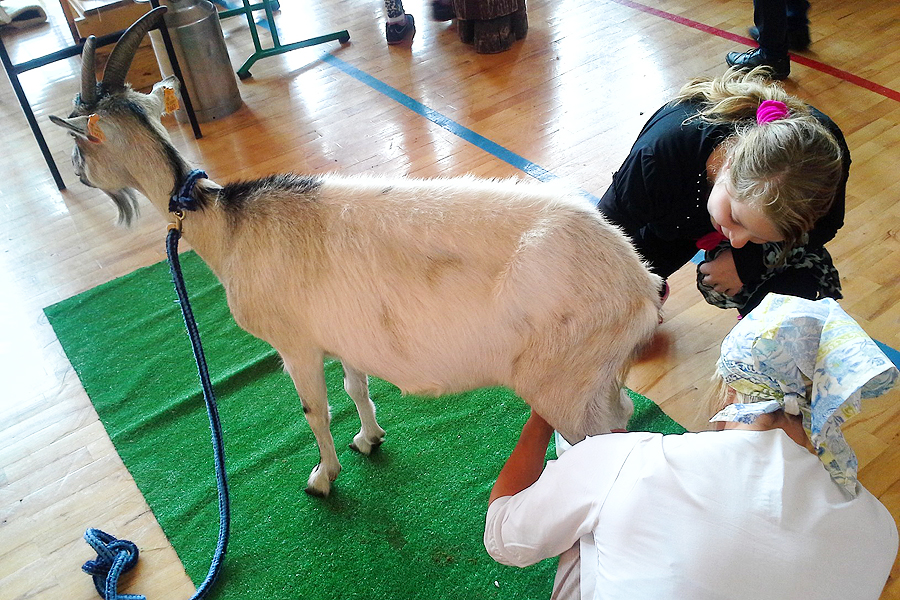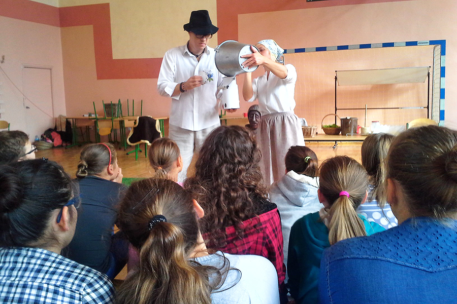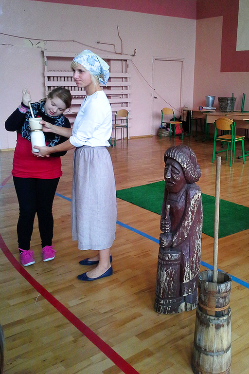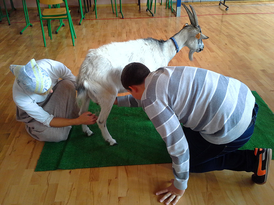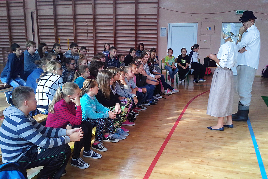 Dnia 1 października uczniowie z klasy V i VI szkoły podstawowej oraz II i III gimnazjum wzięli udział w niezwykle ciekawym programie edukacyjnym „Mleczna Droga”. Podczas godzinnego spotkania młodzież uczęszczająca na lekcje języka kaszubskiego wraz z nauczycielkami: p. A. Treder i p. M. Maszota - miała okazję poznać proces produkcyjny masła i twarogu. Całe spotkanie rozpoczęło się od powitania z gospodarzami z Zagrody Powroty. Zgromadzeni uczniowie usłyszeli ciekawą bajkę o maśle i dowiedzieli się do czego służą starodawne urządzenia takie jak: center fugi, masielnice, cedzidła, drewniane łyżki, czy kanki. Najbardziej jednak spodobała się wszystkim wizyta kozy, którą każdy miał możliwość wydoić a następnie skosztować pysznego, świeżego mleka. Młodzież przy pomocy gospodarzy wytworzyła również twarożek i masełko, które po spotkaniu z przyjemnością poddane zostało degustacji i spotkało się z uznaniem smakoszy. Opracowała: mgr Anetta Treder