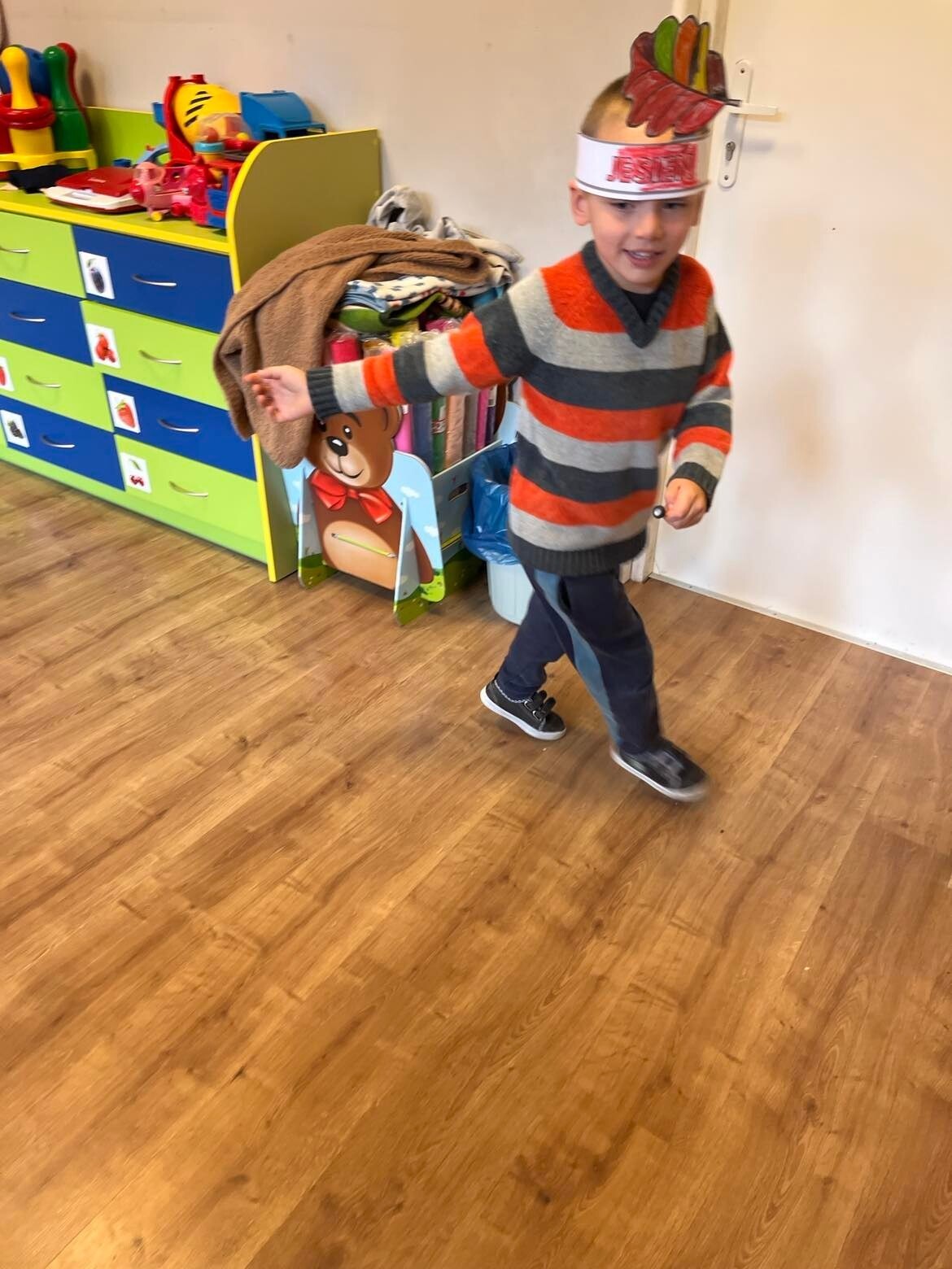 Już wszystkie przedszkolaki wiedzą , że JESIEŃ, to nie piękna pani w sukni z kolorowych liści i wianku z jarzębiny i kasztanów. Jesień to jedna z pór roku, a zauważyć ją możemy w porannych mgłach, przymrozkach, odlatujących ptakach i oczywiście w pięknych kolorowych liściach.