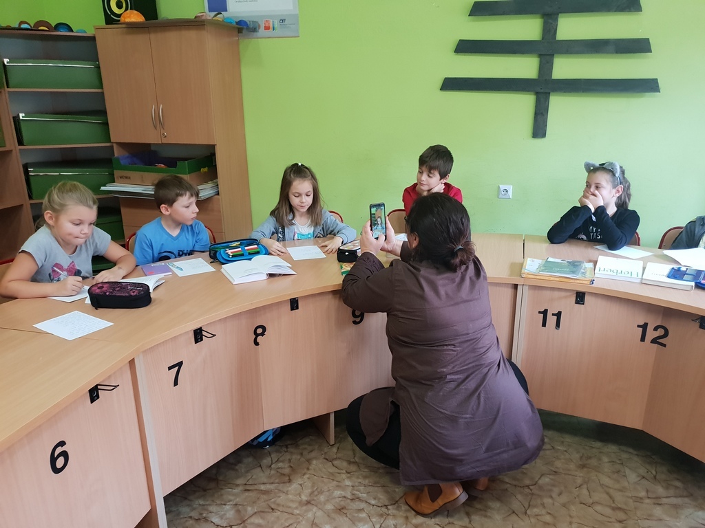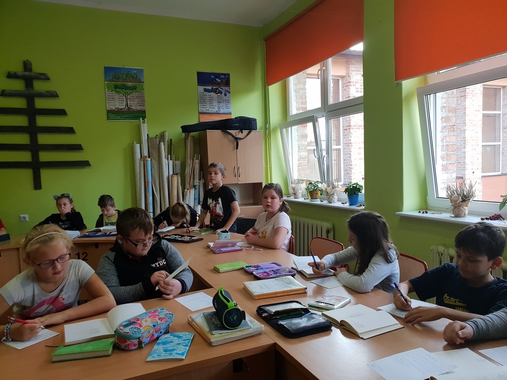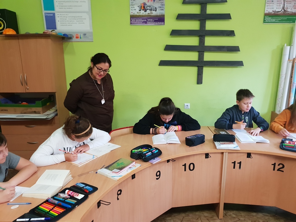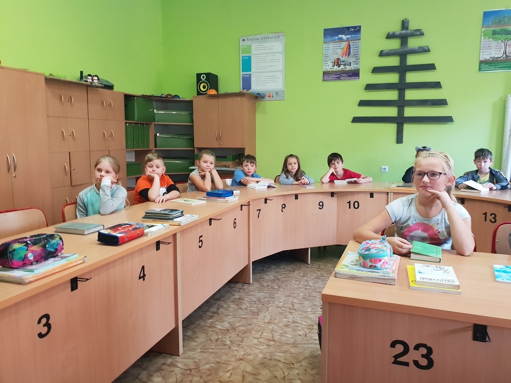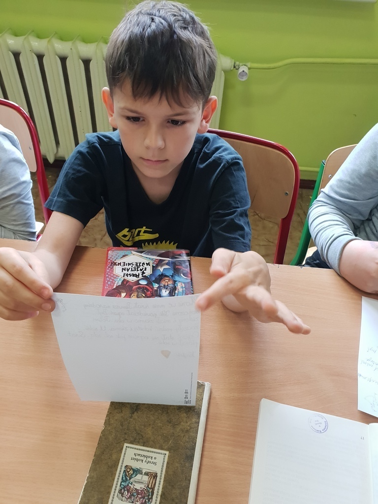 16 października pani Kamilla Knap-Wrześniewska, dyrektor biblioteki w Nowej Wsi Lęborskiej (a prywatnie mama Kajetana i Filipa - uczniów naszej szkoły) przeprowadziła akcję PODARUJ WIERSZ. Pani Kamilla w bardzo ciekawy sposób opowiedziała o poezji Herberta, pokazała uczniom kilkanaście tomików wierszy,kilka ciekawych stron internetowych oraz aplikacji związanych z tematem. Następnie uczniowie wybrali wiersz z tomiku poezji i własnoręcznie przepisali go na pięknym papierze sygnowanym logo akcji. Kilku uczniów oraz pani Sylwia Janicka napisali własne wiersze. Wszystkie wiersze przepisane przez uczniów zostały podarowane rodzicom, nauczycielom i kolegom ze szkoły.