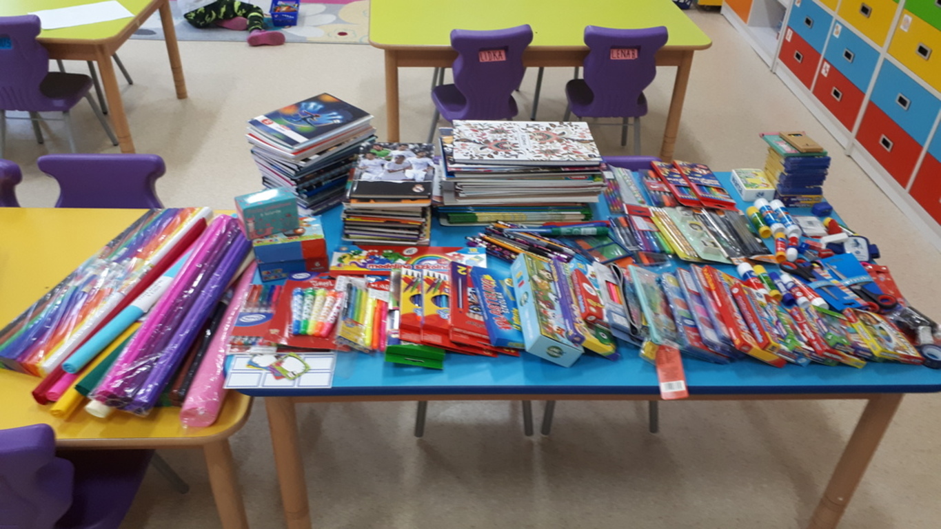 Zebrane przybory szkolne zabrane zostały przez wolontariuszy którzy przekażą je rówieśnikom zza wschodniej granicy.