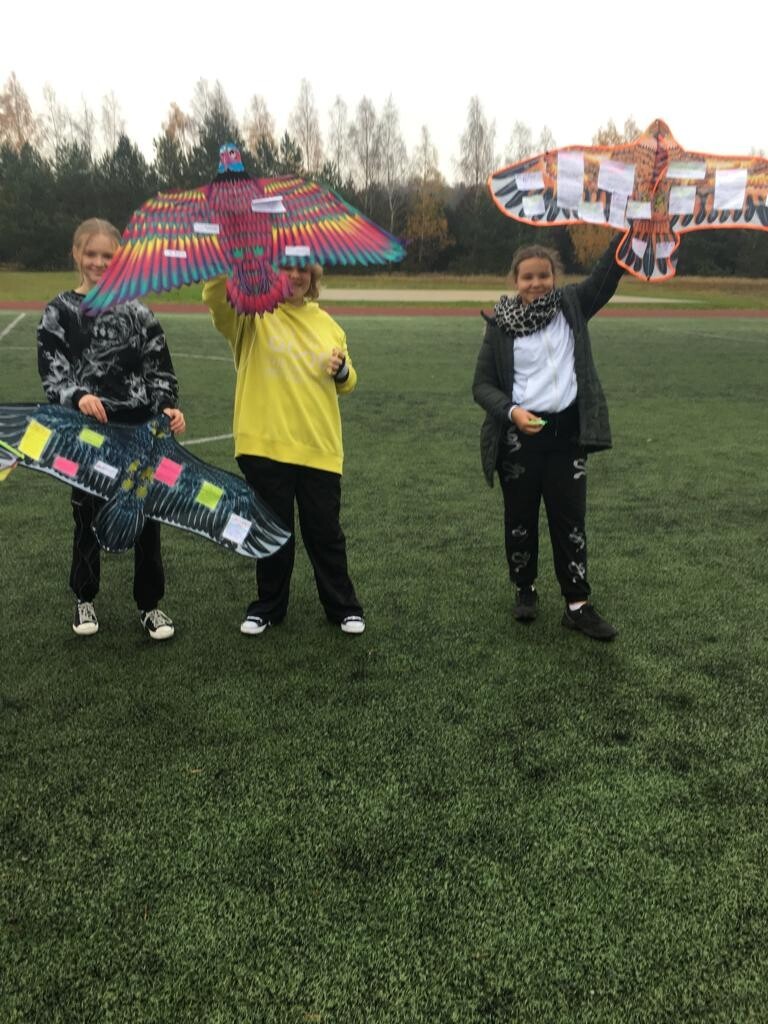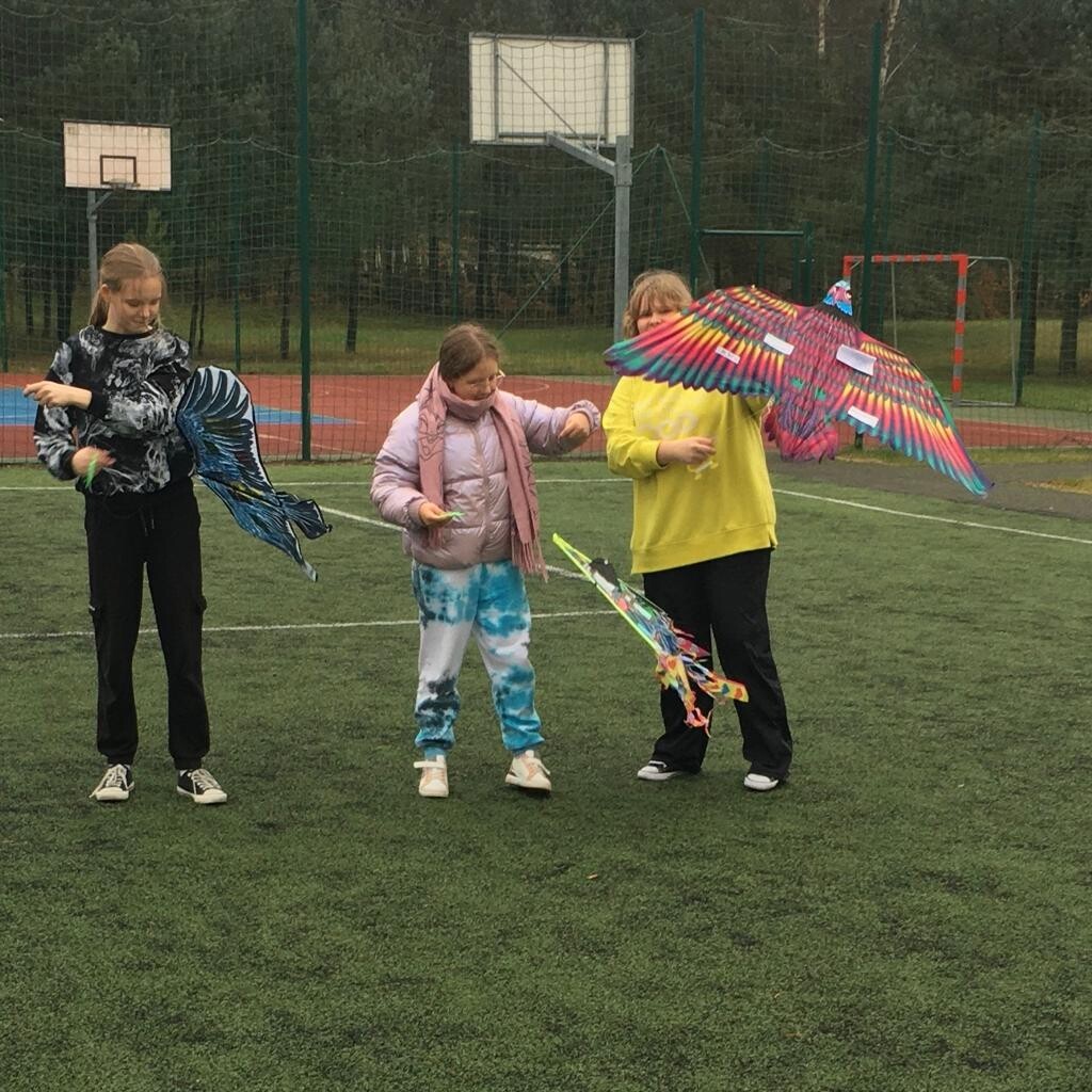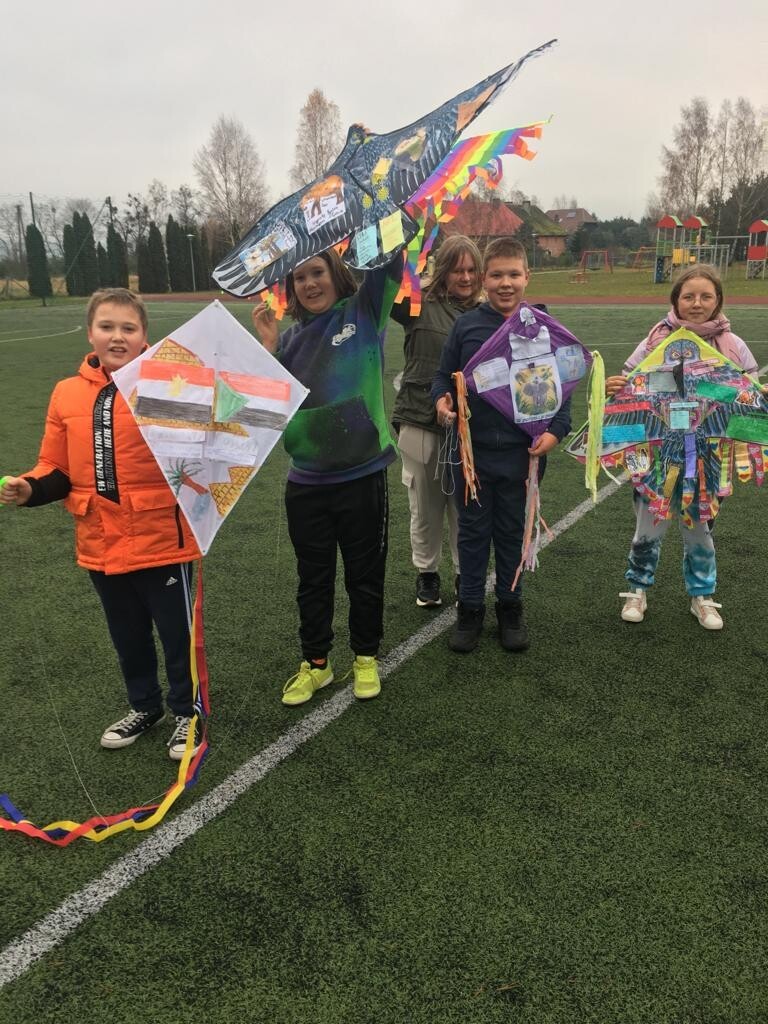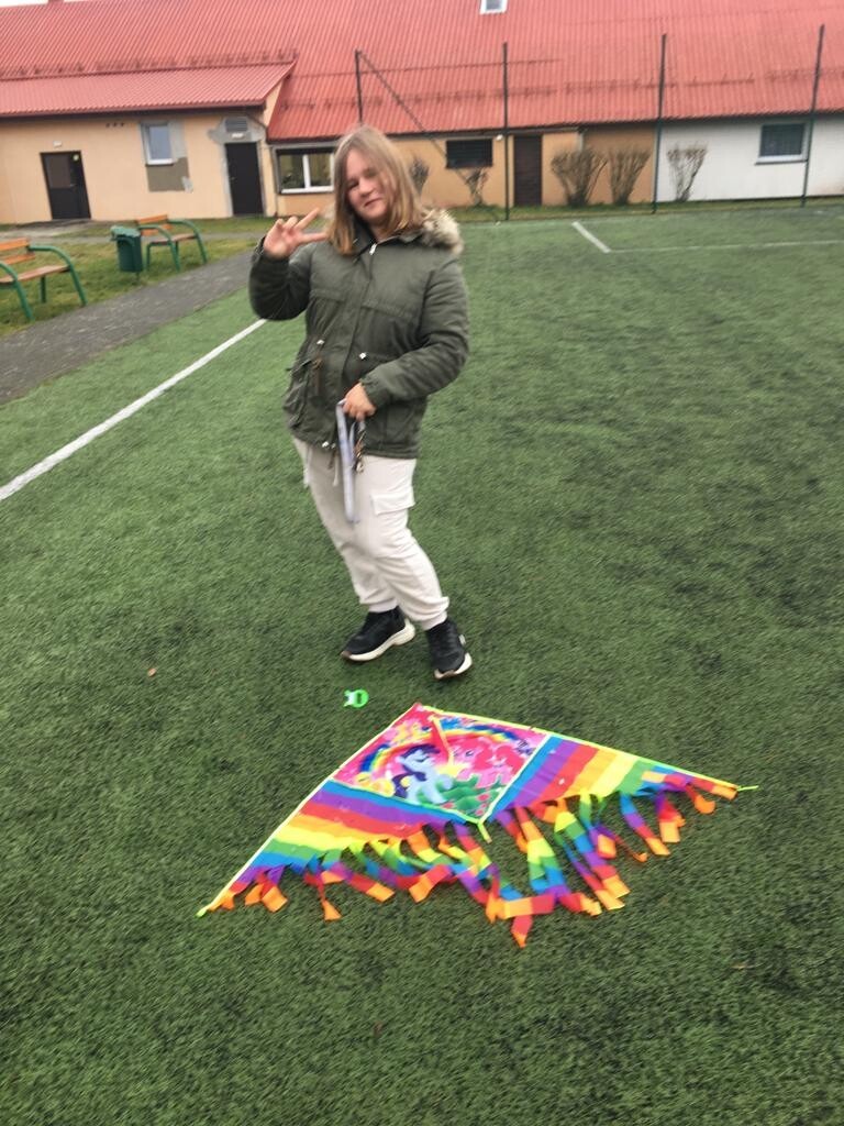 Taki napis umieścił Staś Tarkowski (bohater lektury „ W pustyni i w puszczy”) na latawcu, który miał być informacją dla rodziców, że porwane dzieci żyją. Uczniowie klasy VI na podsumowanie omawianej lektury wykonali własnoręcznie latawce. Umieścili na nich informacje i ciekawostki zdobyte podczas omawiania powieści. Choć dzień był dżdżysty, nic nie stało na przeszkodzie, by latawce wzbiły się w niebo. Zabawa była przednia, zatem uczmy się, bawiąc.