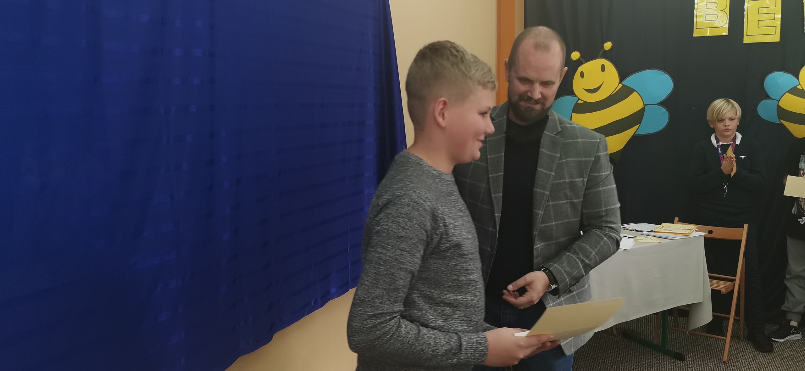 15 października dwoje uczniów naszej szkoły: Joanna Janneck z kl. V oraz Piotr Janneck z kl. VII wzięli udział w Powiatowym Konkursie „Spelling Bee” z języka angielskiego. Konkurs odbył się w Społecznej Językowej Szkole Podstawowej LTO w Lęborku. Konkurencja była spora, a konkurs nie należał do łatwych, jednak nasz uczeń Piotr Janneck zajął III miejsce! GRATULACJE!!!