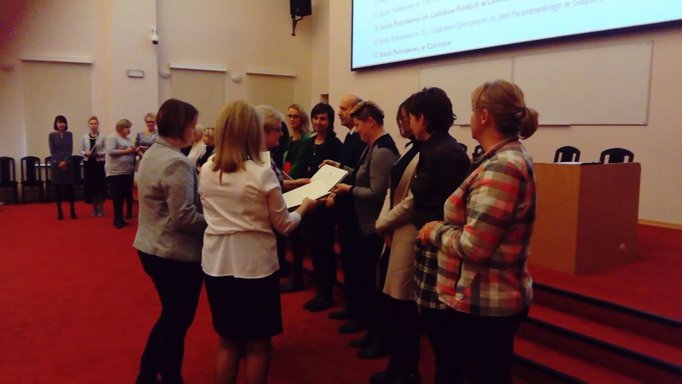 W dniu 29.11.2018 podczas konferencji dla szkoł i przedszkoli realizujących program Szkoła/Przedszkole Promujące Zdrowie nasza szkoła oficjalnie została przyjęta do Pomorskiej Sieci Szkół Promujących Zdrowie. Akt przynależności z rąk Pani Wicekurator odebrały p. Marta Prosińska-Żydyk i p. Karolina Jopek.