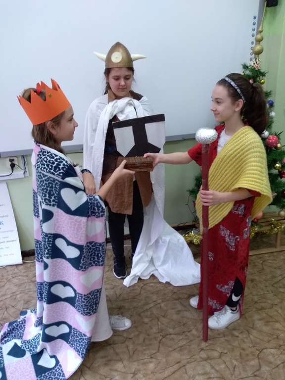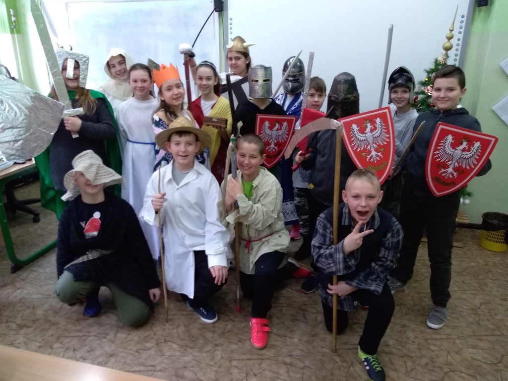 To nie była zwyczajna lekcja... Uczniowie klasy V na lekcji historii wcielili się w role średniowiecznych rycerzy, duchownych, królów i chłopów. Wszyscy zachwycili ciekawym strojem i umiejętnościami aktorskimi. Brawo! ;-)