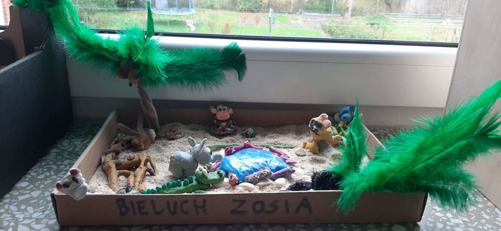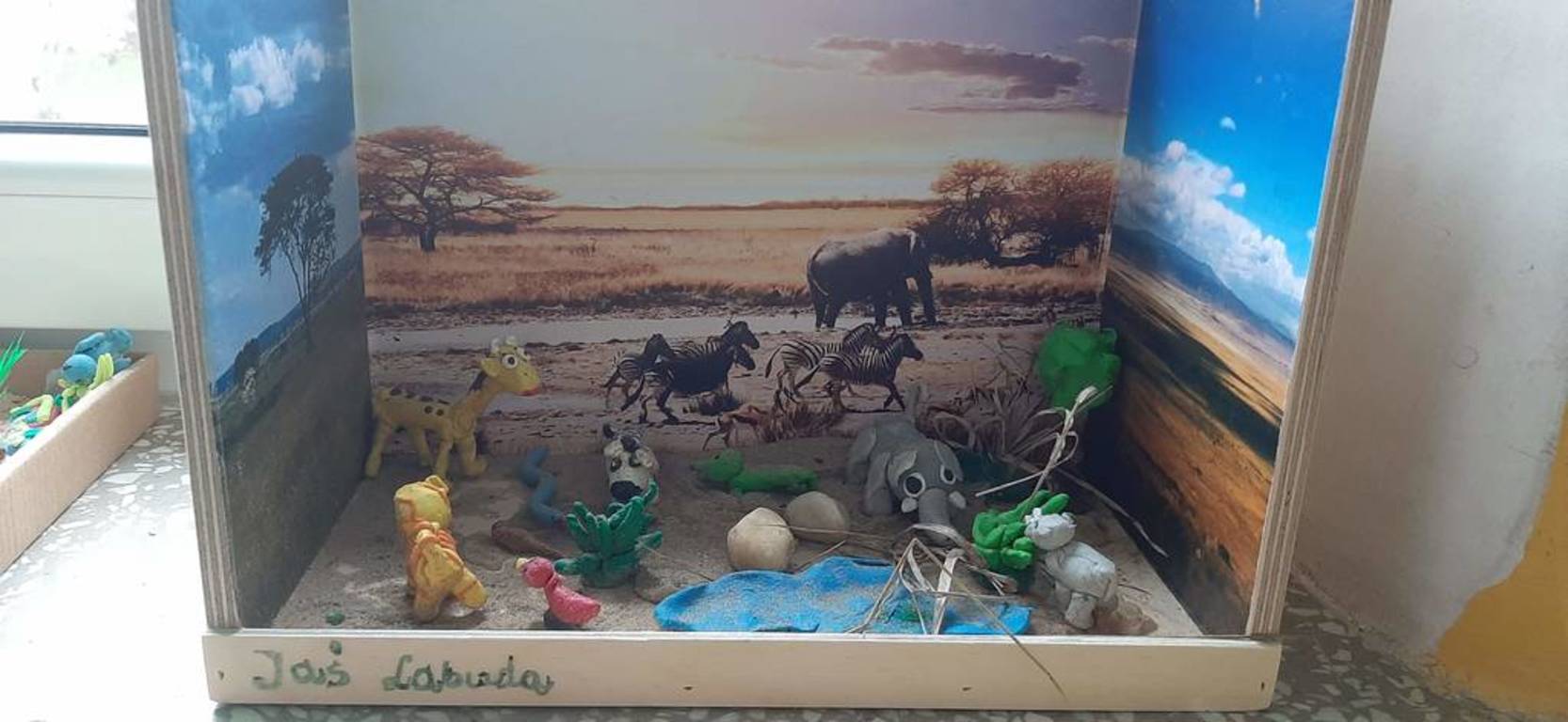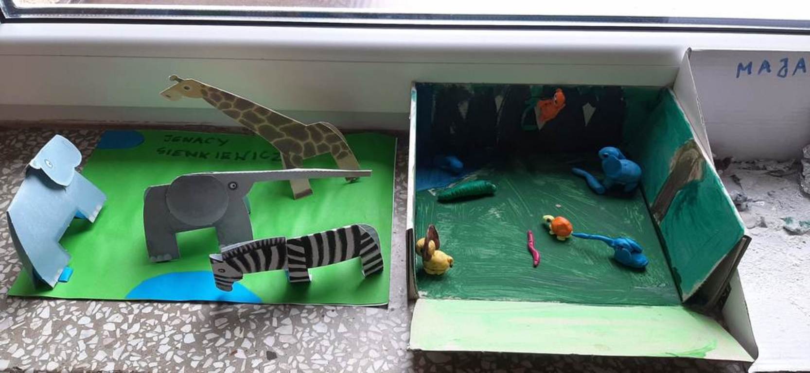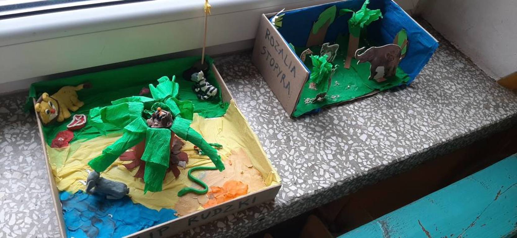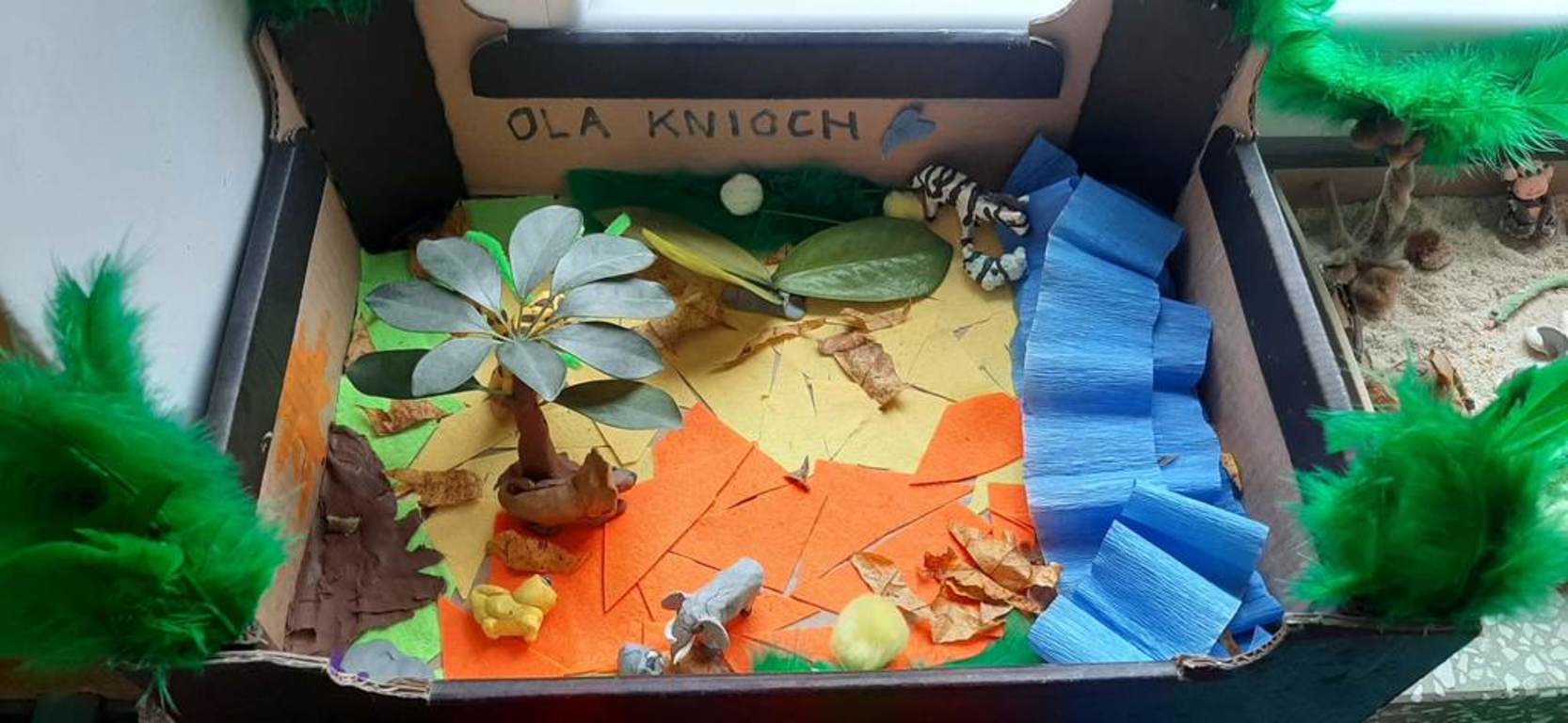 Uczniowie klasy pierwszej wykonali pracę projektową z języka angielskiego. Projekt polegał na stworzeniu makiety ze zwierzętami mieszkającymi na sawannie oraz umiejętności nazwania ich w języku angielskim.