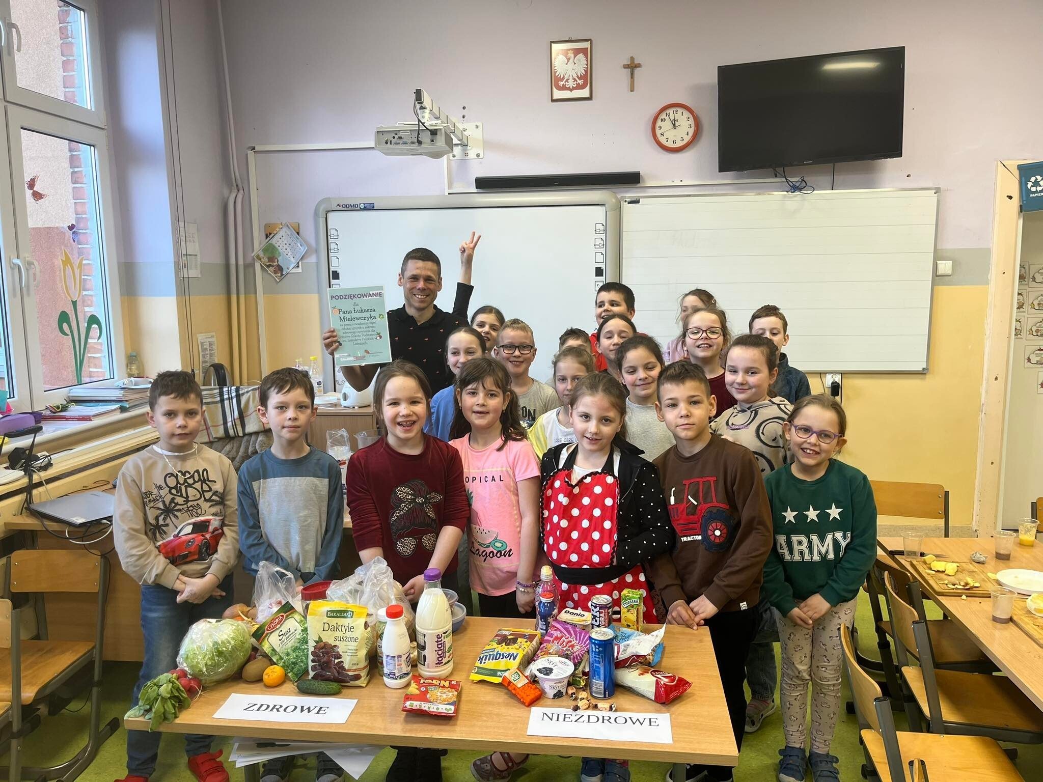 Dziś w naszej szkole odbyło się zorganizowane przez świetlicę szkolną spotkanie z dietetykiem dla uczniów klas 1-3. Naszym gościem był pan Łukasz Mielewczyk, który opowiedział dzieciom o tajnikach zdrowego odżywania. W trakcie spotkania dzieci dzieliły produkty na zdrowe i niezdrowe, omawiały piramidę zdrowia, dowiedziały się czym można zastąpić słodycze a w części praktycznej wykonywały zdrowie i pyszne koktajle z dietetykiem. Bardzo dziękujemy za spotkanie ![]()