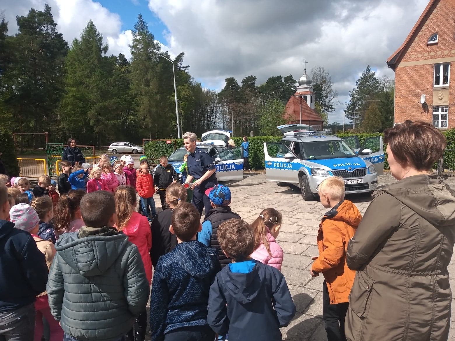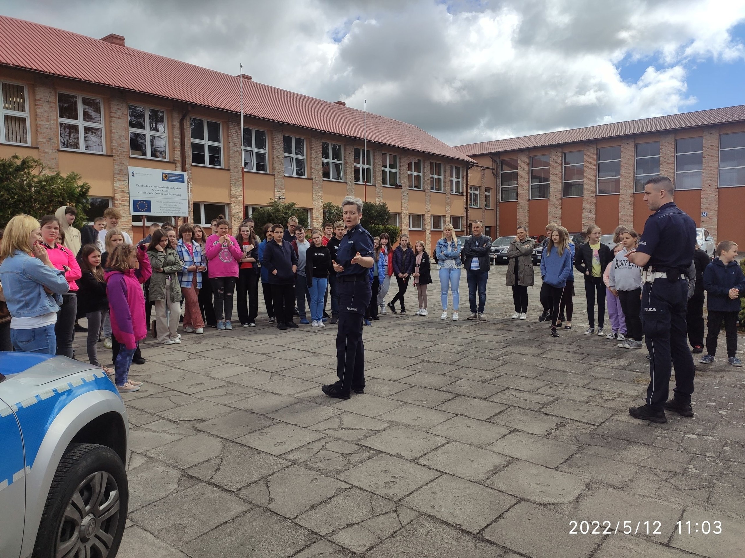 12.05.2022r odbyło się spotkanie uczniów naszej szkoły z policjantami, by porozmawiać o bezpieczeństwie na drodze. Odwiedzili nas policjantka z Zespołu ds. Profilaktyki Społecznej i Nieletnich oraz Naczelnik Wydziału Ruchu Drogowego Komendy Powiatowej Policji w Lęborku. Celem tego spotkania była rozmowa z uczniami na temat bezpiecznego poruszania się po drodze i podniesienie świadomości zagrożeń z jakimi mogą się spotkać na drodze. Ogromnym zainteresowaniem cieszyły się policyjne radiowozy, do których można było wsiąść a nawet włączyć sygnały.