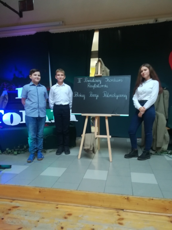 Nasi uczniowie w dniu 7 listopada wzięli udział w II Powiatowym Konkursie Poezji Patriotycznej w Nowej Wsi Lęborskiej. Odnieśli duży sukces: Nikola Kustusz z klasy VIII zajęła III miejsce, recytując wiersz Anny Świrszczyńskiej "Budując barykadę", Szymon Raczkowski z klasy VII wyrecytował wiersz K. I. Gałczyńskiego "Pieśń o żołnierzach z Westerplatte" i zdobył wyróżnienie, a Mikołaj Mantaj z klasy VI również został wyróżniony, prezentując wiersz "Dziś idę walczyć, mamo". Gratulacje!