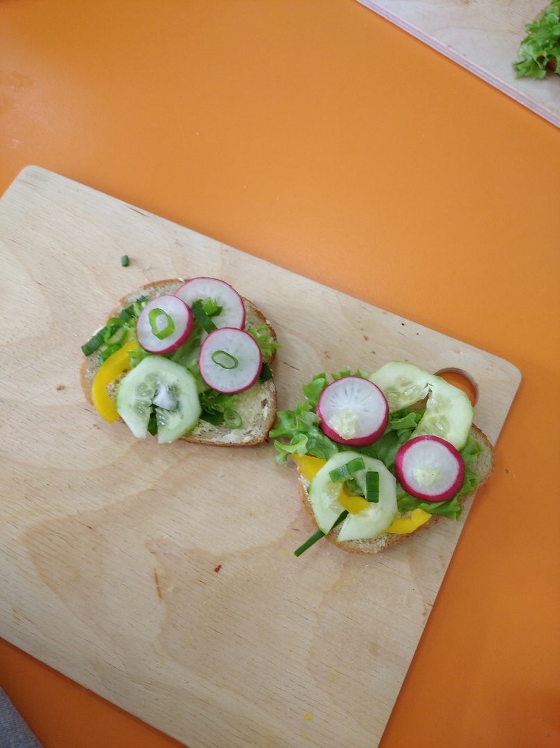 O tym, natomiast , że warzywa są zdrowe, dzieci przekonały się innego dnia robiąc zdrowe kanapki. To było dla nich wyzwanie. Tego dnia swoje śniadanko, które zawsze było już przygotowane przez któregoś z domowników, przedszkolaki musiały przygotować sobie same. I temu zadaniu sprostały. Kanapki były bajecznie kolorowe i przede wszystkim zdrowe.
